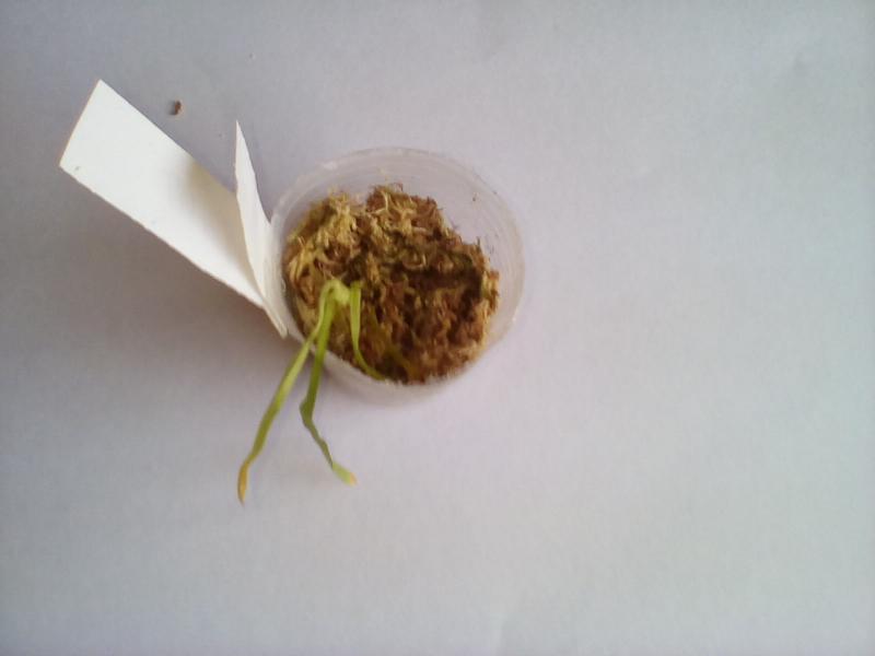 Bulb. fascinator near semi-alba - несколько микроскопических бульбочек, снизу коричневатые, подробно не рассмотреть. Все листья подвяленные - желтеют, концы черные, не поврежденных листьев нет. Корни в основном засохшие, есть пара живых. Буду надеяться на лучшее.