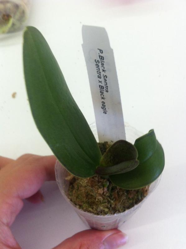 заказ № 68060 спецпредложение 25069 Умопомрачительно! Phal Black Sentra Chin Yo растение 1,7 маленькое, но растет новый листик, корешков не много, но все живые, во мху, понравился темный цвет листиков, примерно этого и ожидала (на фото 2 справа)