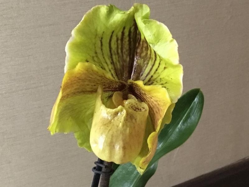 3) Paph delenatii - пришел с бутоном. Сегодня начал распускаться потихоньку.