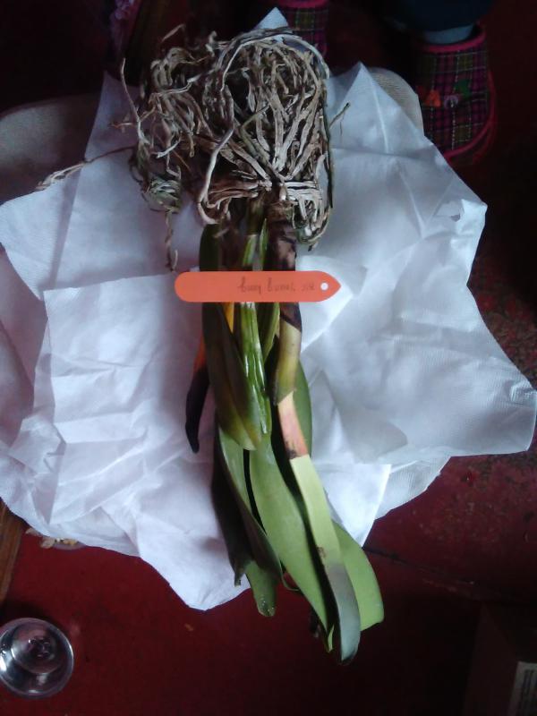 Растение маленькое, но очень крепкое, 3 листочка. Все корни живые! Надеюсь, быстро адаптируется и зацветет. Спасибо всем!!