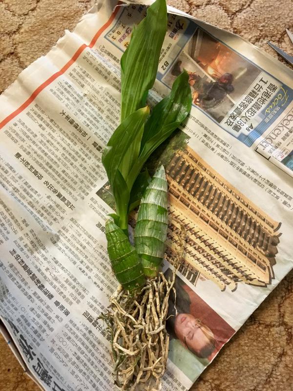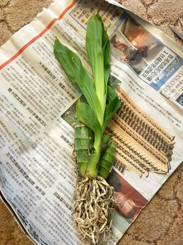 Pot. Haw Yuan Gold - делёнка из 4 бульб и двух ростов. Слоник 50см. Состояние корней разное - есть сухие, гнилые, но, главное, есть живые! Растение чистое. Ризома зелененькая.