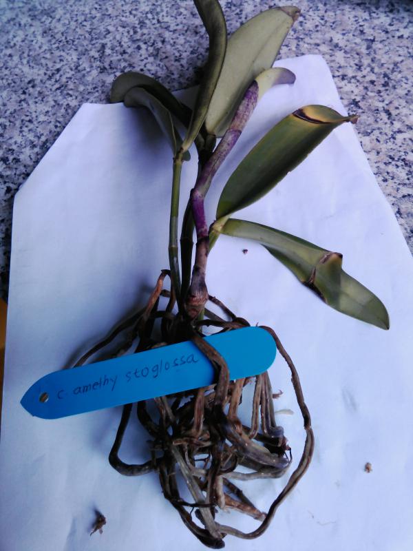 Catasetum planiceps - Две взрослые бульбы, много живых корней. Рост сопрел, но уже рядом проклюнулся новый. Отличное растение.