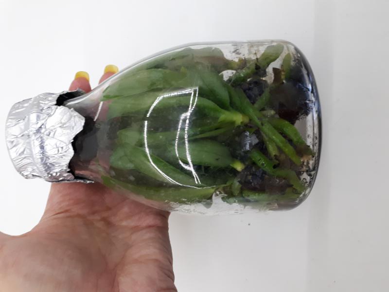 Получено отличное чистое мини растение с кучей живых корней в стаканчике 1.7 в сухом мху. Нашла пенек от цветоноса.