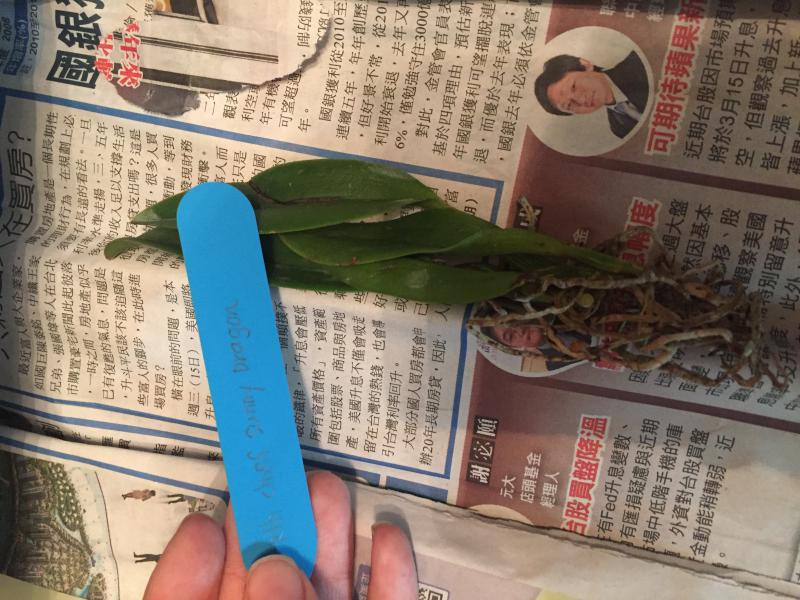 Конечно, совсем не цветущее. Внешне здоровое, чистое. Пересушенное, в каменно сухом мхе. Завернуто в газетку уже здесь. Без бирки. А очень бы хотелось. Неужели европейские поставщики стали на бирках экономить?
