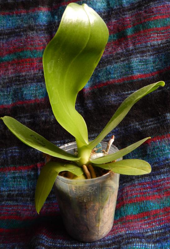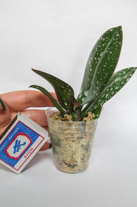 Отличное взрослое растение, соответствует размеру 3. Размах листьев 30 см. Листья в тургоре. Пришло в пересушенном мху (полила). Прекрасные корни (один поврежден). Живности не обнаружено. Ранее не цветшее.