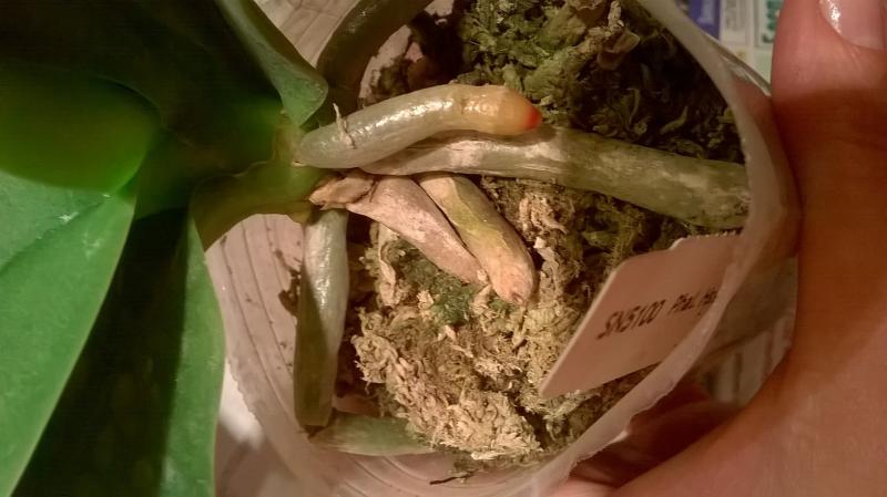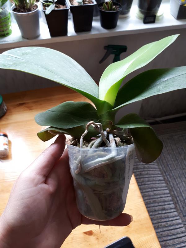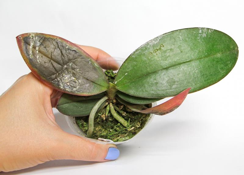 С частично открытой корневой, я так и не поняла, в чём оно сидит. Две пары листьев, на одном листе механические повреждения. Шея чистая, корни частично обломаны, но практически все живы. Насекомых не обнаружено.
