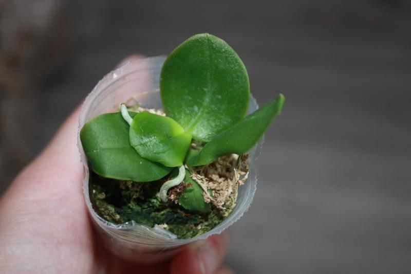 Совсем малыш в сфагнуме. 5 листьев совсем крошечных, тугор снижен. Просматривается небольшое количество растущих корней. Думаю, все будет хорошо, но до цветения очень далеко