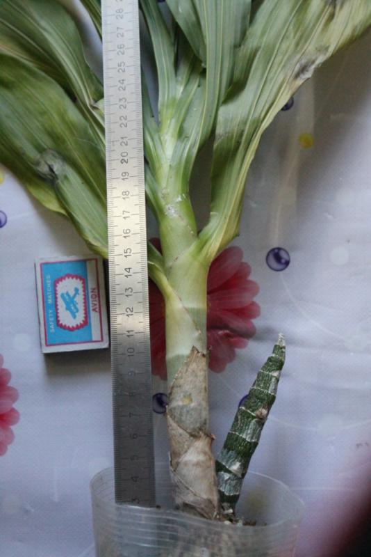 Отличное растение, заявленному размеру соответствует. Ранее цвело, пришло с открытой корневой, поэтому корней живых нет, будем наращивать. Есть новый рост, у него были живые корешки, но видно в дороге отсушил.