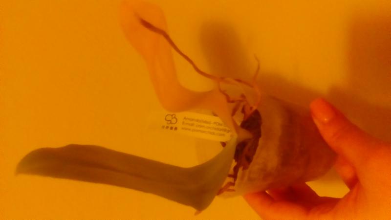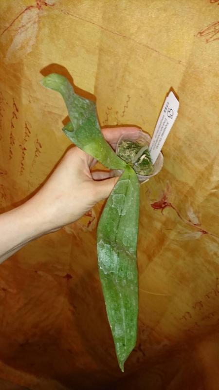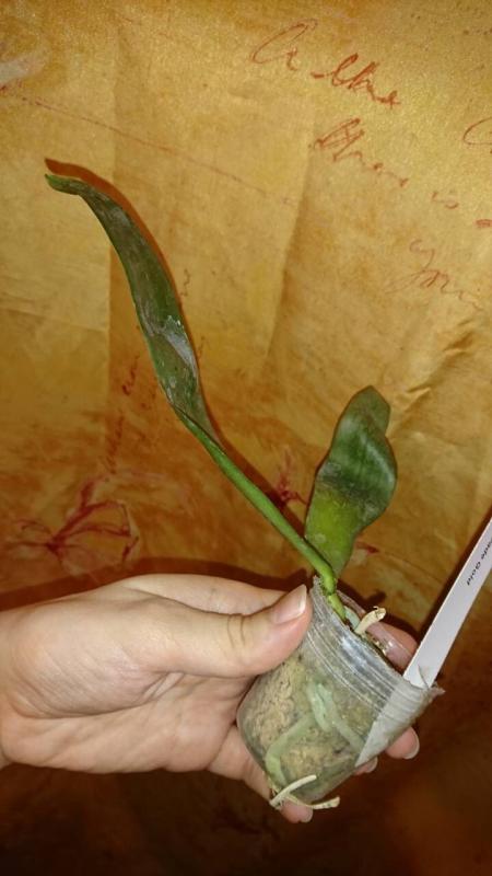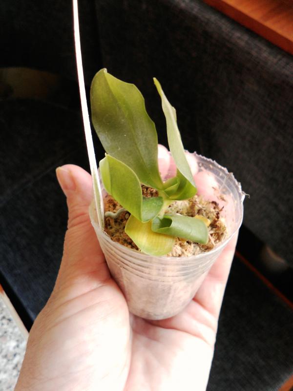 Здоровое растение, листья в тургоре, корешков живых много. Посажен в корзинку диаметром 4 см, внутри кусочки коры. Вредителей нет. На охоте было заявлено, что малыши, поэтому ожидала прямо совсем сеянец. А тут и не малыш совсем, листья в размахе 12 см. Очень довольна, что заказала, спасибо огромное всем причастным!