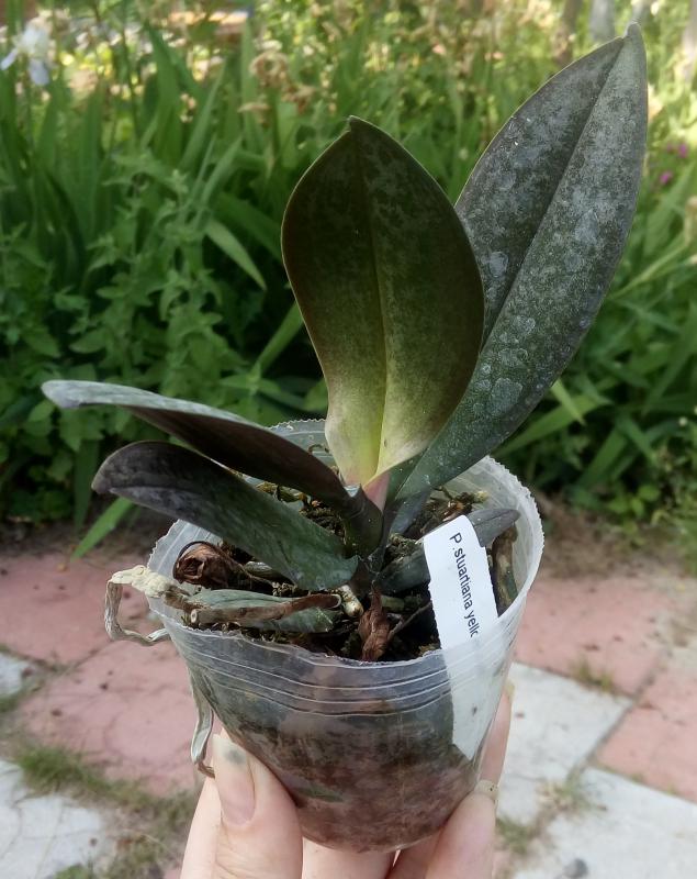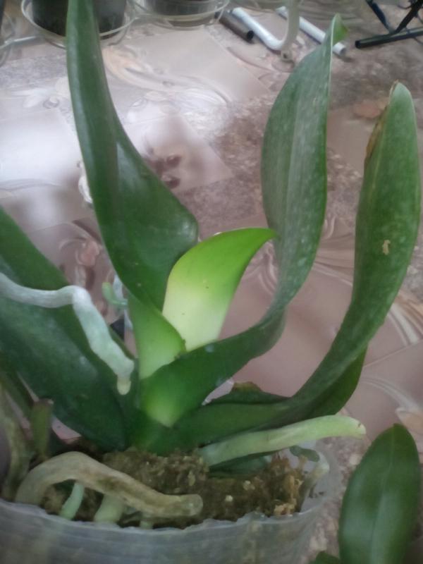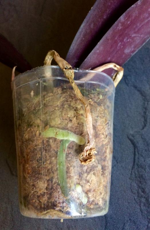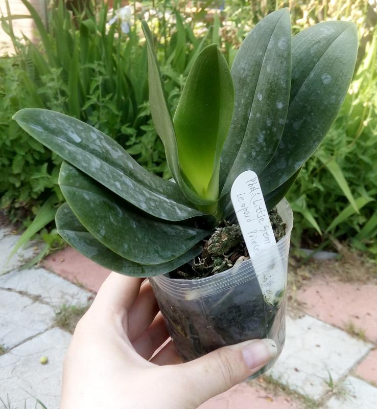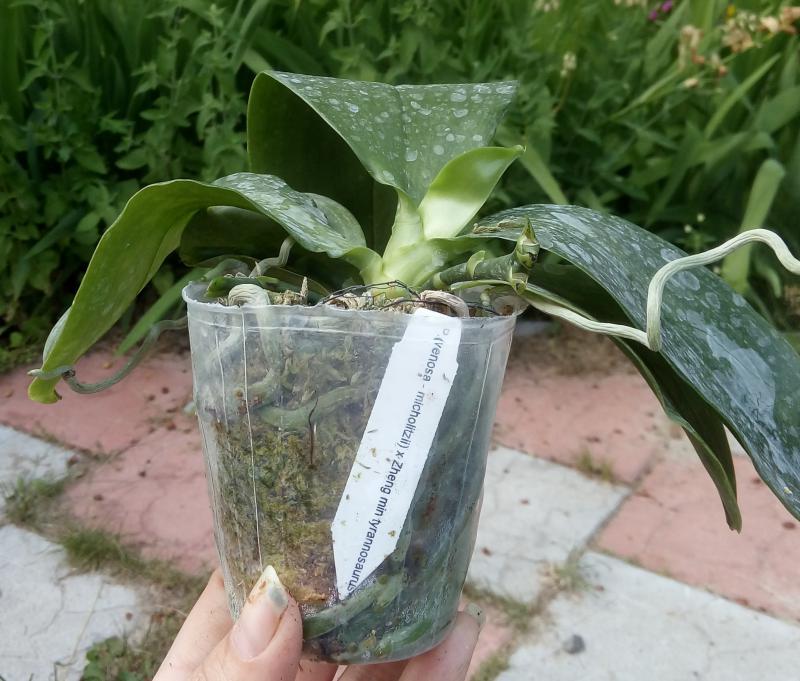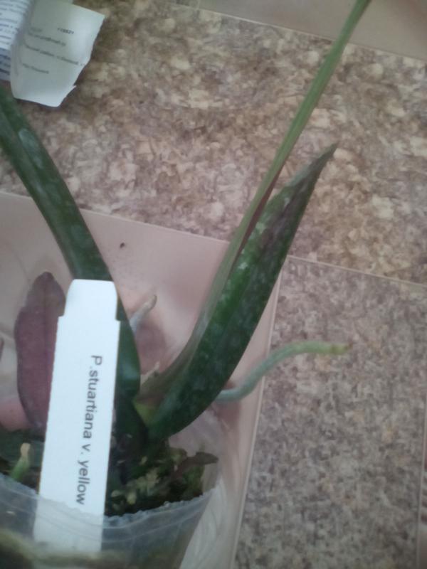 Растение приехало во влажном мхе, с черным засохшим цветоносом, мокрым пятном на одном листе. На мхе валялись отвалившиеся цветочки ( уже засохшие, но с белой плесенью ). Пятно обрезала, присыпала фундазолом, надеюсь что в дальнейшем с растением будет всё хорошо.
