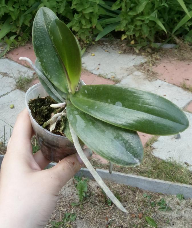 Хорошее, чистое растение размера 2,5 , с растущими корешками. Орхидея ранее цвело, о чем свидетельствует засохщий цветонос. Приятный бонус - в горшке 2 орхидейки.