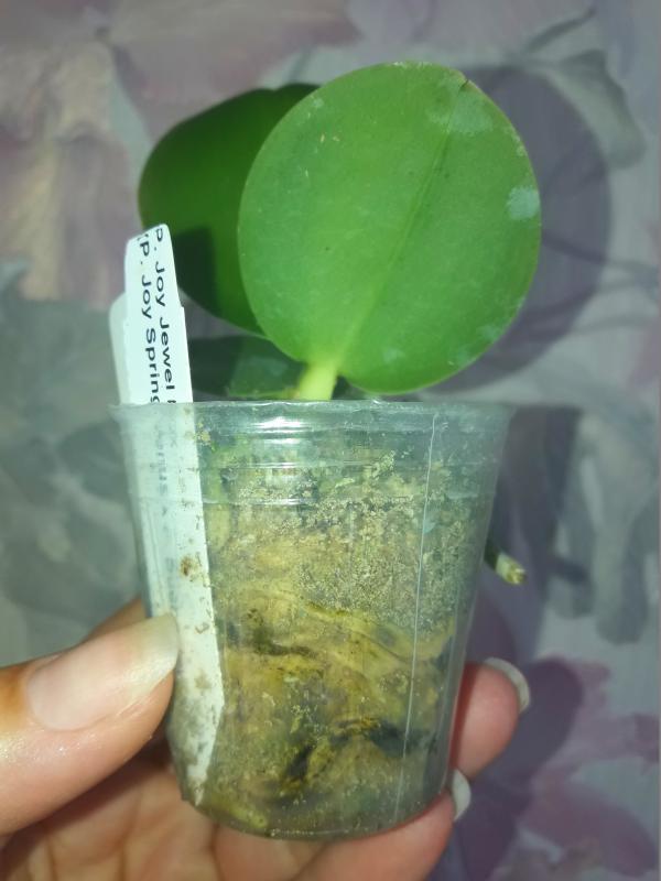 Действительно от Джоя. Ботва замечательная, лоснящаяся, а вот с корешками тотальная беда. Живой только 1 корешок, который не в горшке. Растение сидит в каком-то трухлявом мхе. На фото всё видно. Будем спасать. Ну и, конечно же, не размер цветения (далеко не размер цветения): 3 листика, из которых самый большой 5см всего.Всем спасибо!