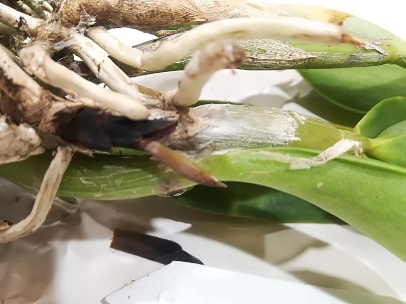 Ну что - визуально пришло хорошее растение, соответствующее размеру. 6 бульб, мох влажный, недавно процветшее (срезанный цветонос). Но - молодой рост оказался гнилым, у трех ростов под чешуйками оказались полностью сгнившие почки роста от ризомы. Пришлось удалить вчера 3 бульбы и 1 срезала сегодня, процесс пошел дальше. Корней много, но живых процентов 20 %. Под оставшимися ростами живых корней нет. Не думаю, что есть шансы - осталась единственная точка роста на задней бульбе.IMG_20180711_201556.jpgIMG_20180711_201630.jpgIMG_20180711_201841.jpg