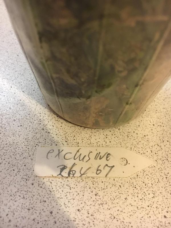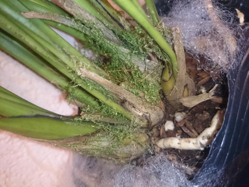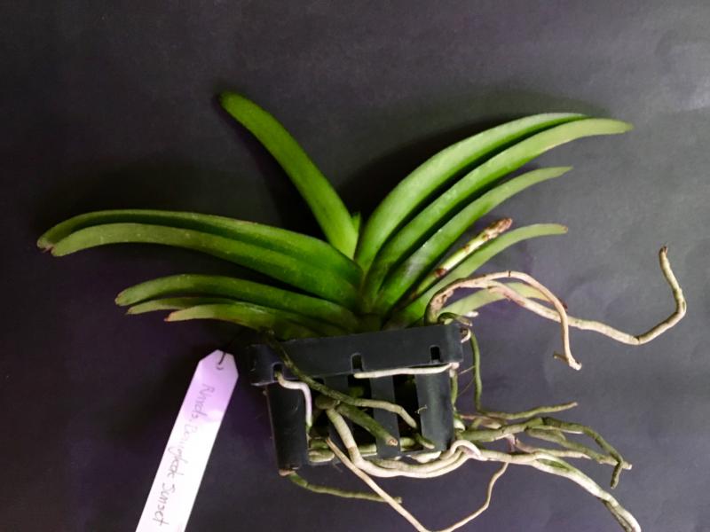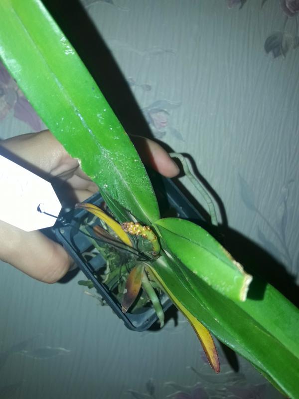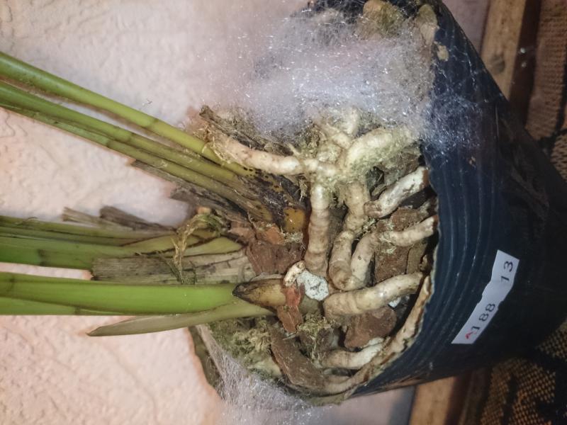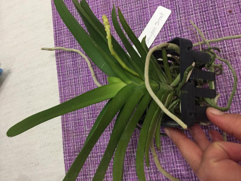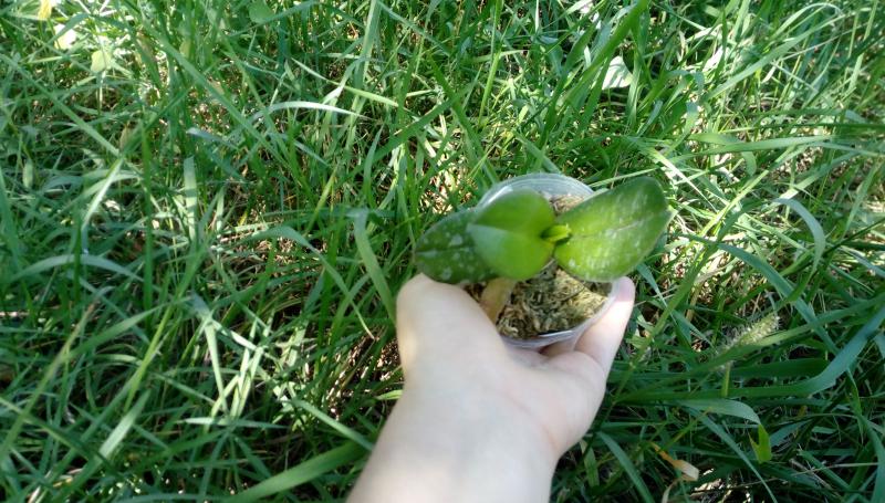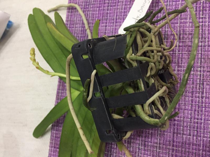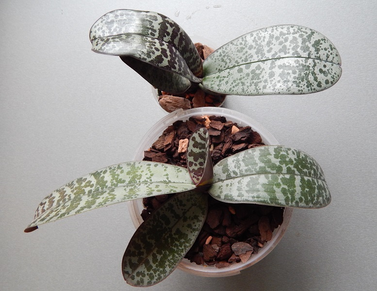 Шикарное растение с цветоносом! Ко мне пришел отцветшим, следы от 3х цветочков. Листиков 4 пары, мох был слегка влажный, еще не пересаживала. Состояние корней не знаю, но сбоку один виден зелененький.