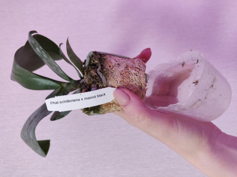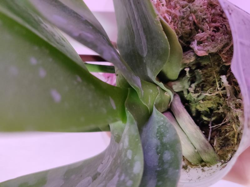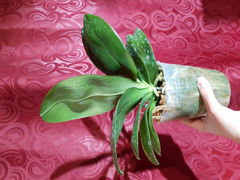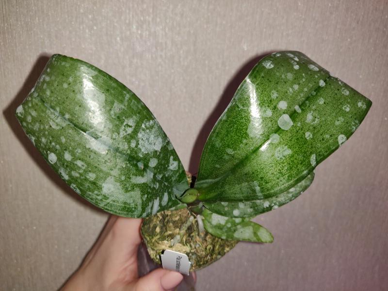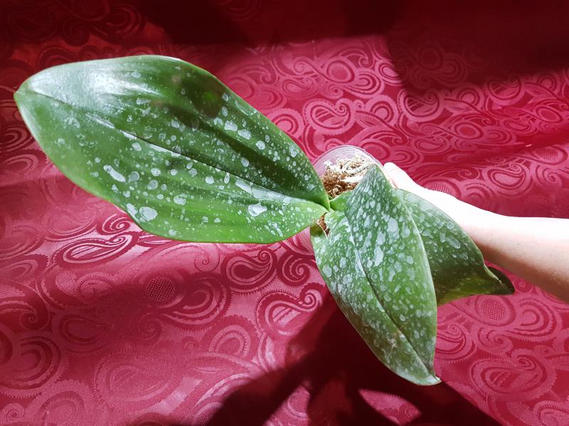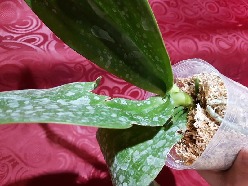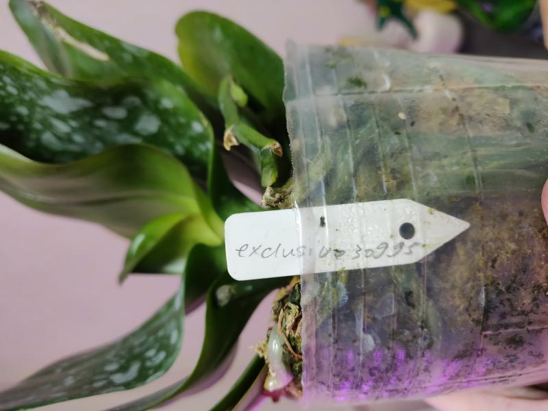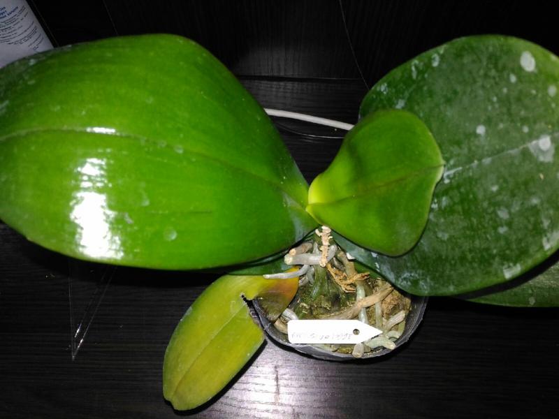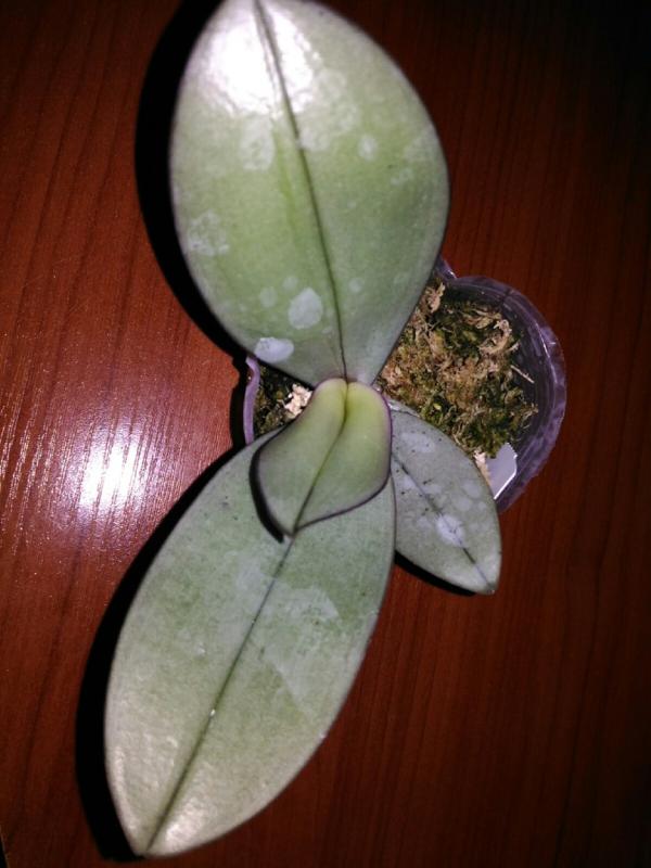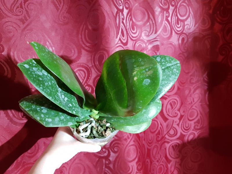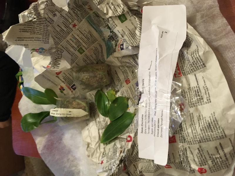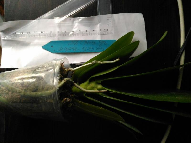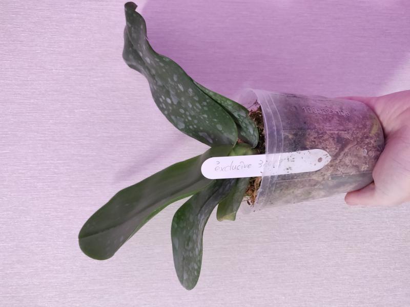 В горшочке 2,5 растением "в размере цветения" оказался подросток из 3-х листиков (2 из них желтеющих) размера 1,7 свежепересаженный перед отправкой. Мох сухой и желтый - видно, что еще ни разу не поливался. Откопал шейку - видно пару зеленых корешков и несколько черных обрубков отмерших корней. На шейке есть какие-то черные пятнышки, но я не понял их природу и глубину. Тургор листьев хороший, поэтому решил лишний раз не травмировать пересадкой, просто освободил шейку. Будем наблюдать.
