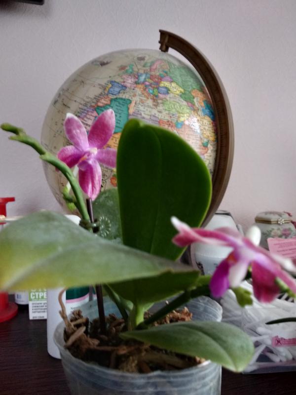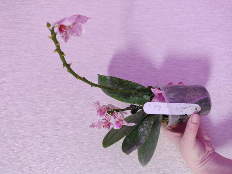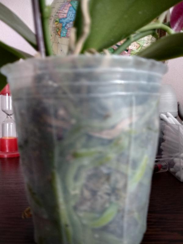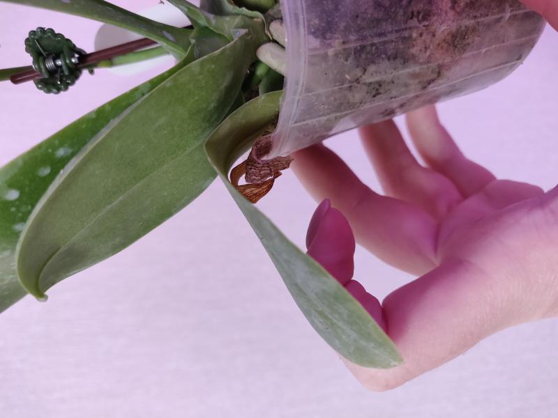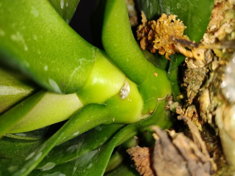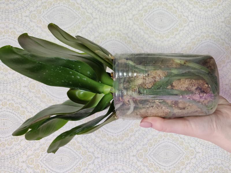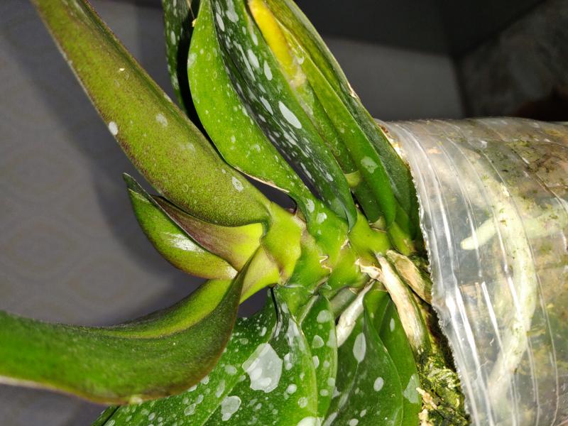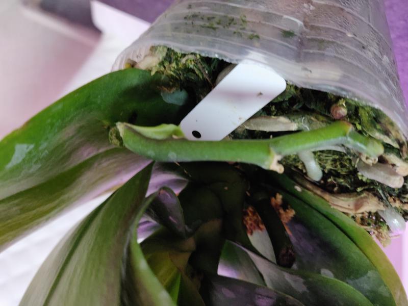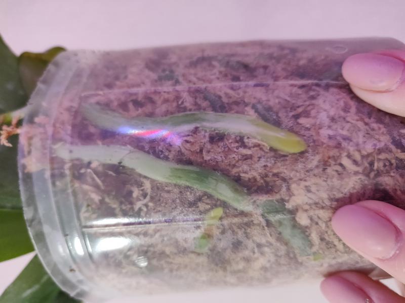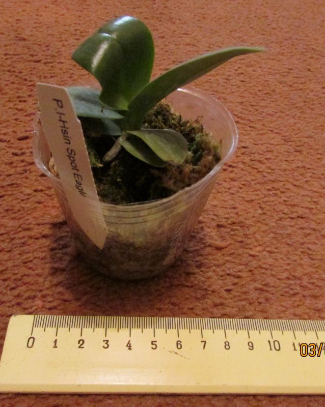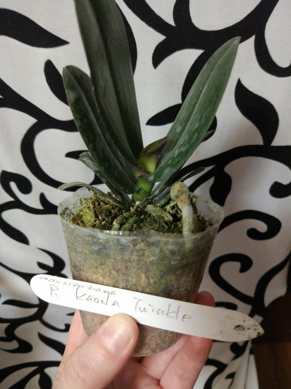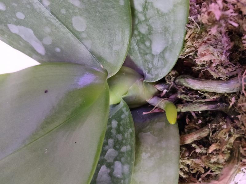 В горшочке 2,5 растением "в размере цветения" оказался подросток из 3-х листиков (2 из них желтеющих) размера 1,7 свежепересаженный перед отправкой. Мох сухой и желтый - видно, что еще ни разу не поливался. Откопал шейку - видно пару зеленых корешков и несколько черных обрубков отмерших корней. На шейке есть какие-то черные пятнышки, но я не понял их природу и глубину. Тургор листьев хороший, поэтому решил лишний раз не травмировать пересадкой, просто освободил шейку. Будем наблюдать.