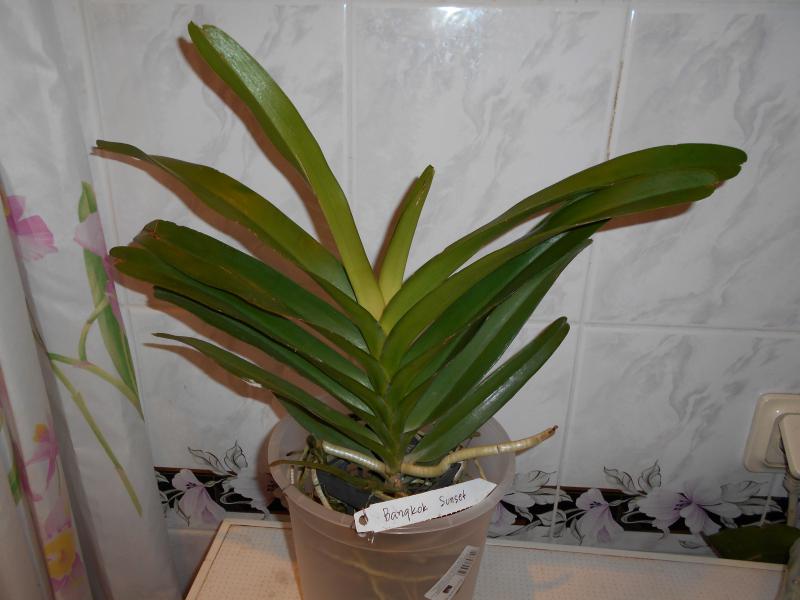 Тоже довольна, хорошее растение, достаточно корней, хотя и тонких, но на период адаптации более, чем достаточно. Внизу три желтеющих листа, но это не та желтизна, от которой у любителей ванд начинают трястись руки. Есть проклюнувшаяся цветочная почка - первая, до этого не цвела. искренне надеюсь, что засушит сама, а после адаптации порадует меня следующим цветением.