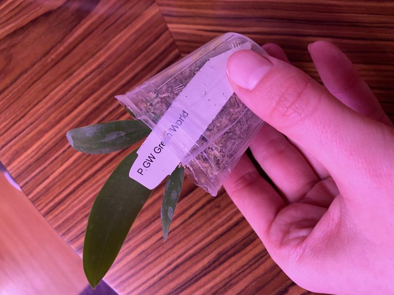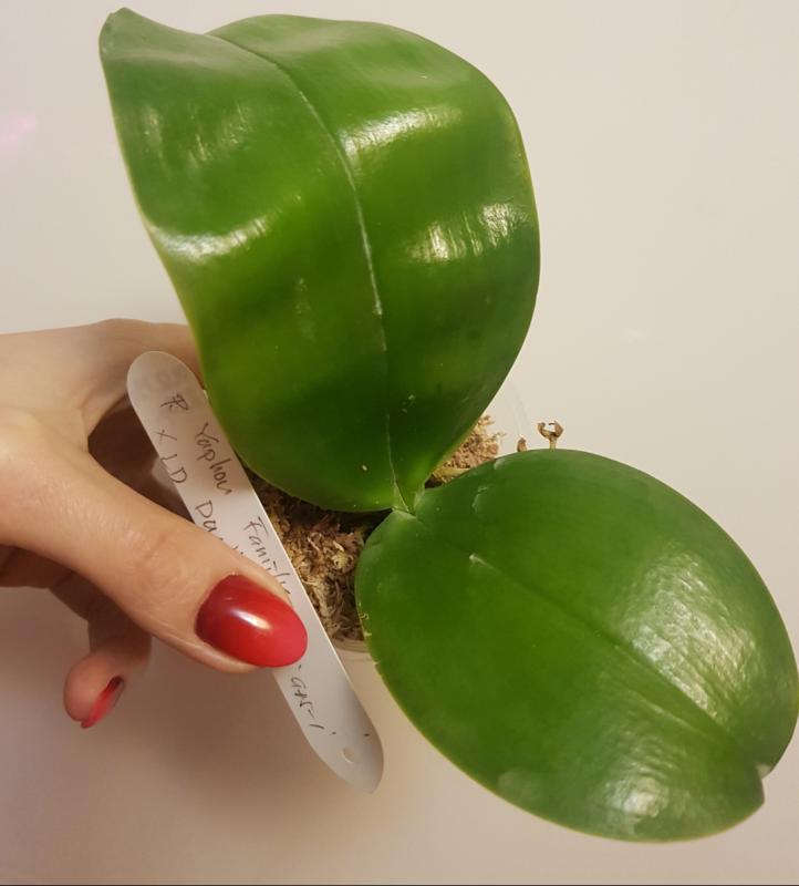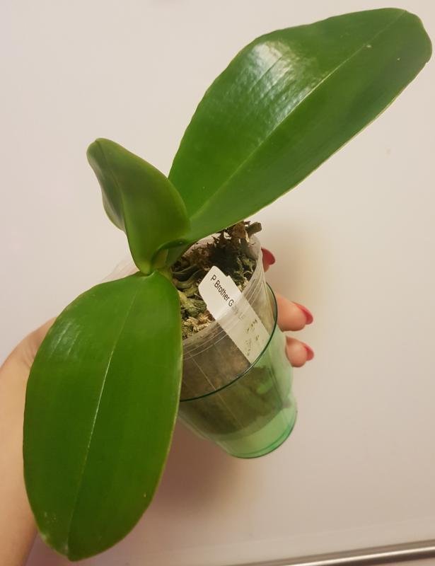 Быстрый заказ всего 3 недели после оплаты. Прекрасный подросток, полноценного размера 2,5. Две пары больших листьев в отличном тургоре, самый большой лист 13см. Мох был хорошо просушен, видны корни. Растение цвело, виден старый цветонос.