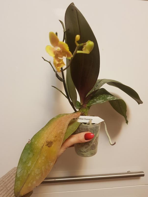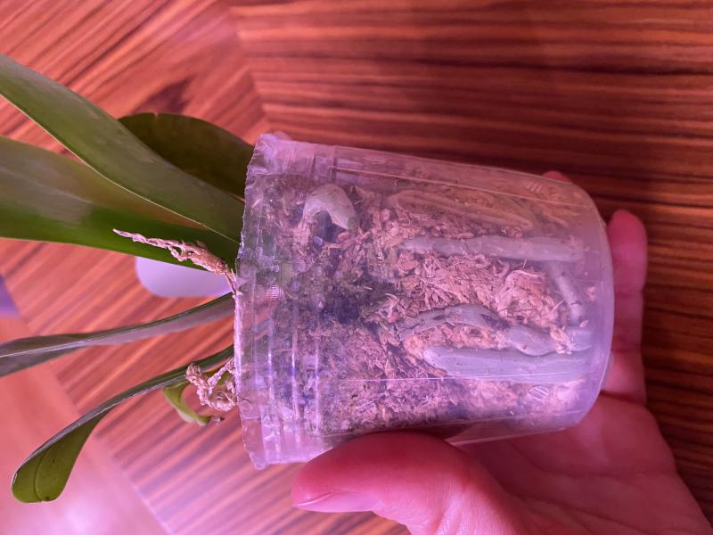 Сперва я была в ужасе. Потом присмотрелась, и у меня появилась некоторая надежда. Растение довольно крупное, листья не сломаны, хотя некоторые повреждения есть. Корней живых много, проклевывается новый корешок. Мне кажется, есть шанс оживить орхидею.
