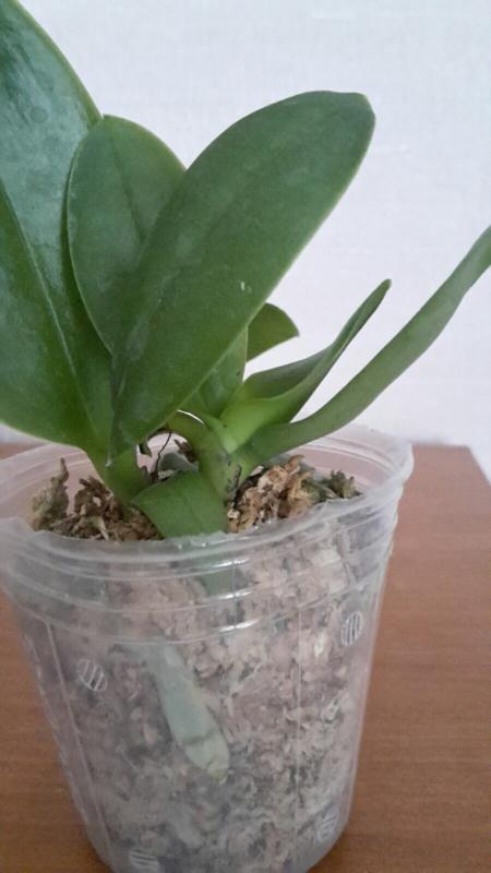 Леопард пришёл размера 3, в горшке 2,5. Много корней, есть растущие. 7 больших толстых листьев от 10см до 20см, все в хорошем тургоре и в идеальном состоянии. Растение цвело, виден старый срезанный цветонос и уже растет новый около 6см.