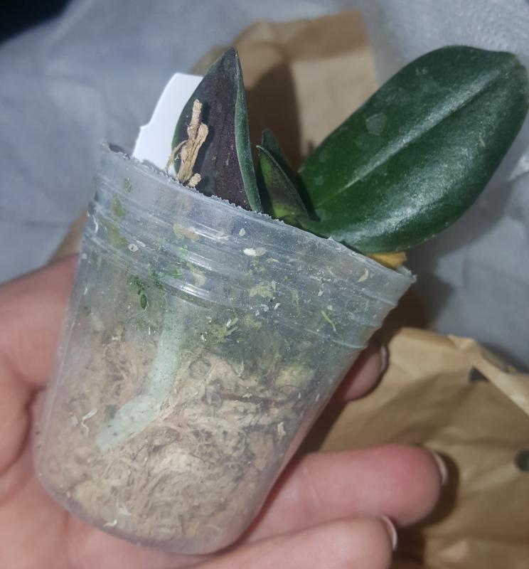 exclusive29930#16121 Получила на третий день после смс. 1,5 часа на метро. Ну что сказать? Спасибо, что живой. Это никакой не 2,5-горшок 1,7. Растение маленькое-маленькое. Если бы знала, то вряд ли бы заказала. За 2009 р. !! Интересно, что об этом думает проверенный поставщик?Что теперь с ним делать? Выживаемость 50/50, если б какой другой фаленопсис, а тут-гигантея. Поставить в теплицу и не дышать!!!(((Я очень сильно расстроена размером растения вот ещё для пущей наглядности . Правда, листик новый растет. Мох как камень, листья начали утрачивать тургор-но это уже моя вина-два дня с половиной на ПВЗ, так что он молодец. Листики с красивым сизым отливом.