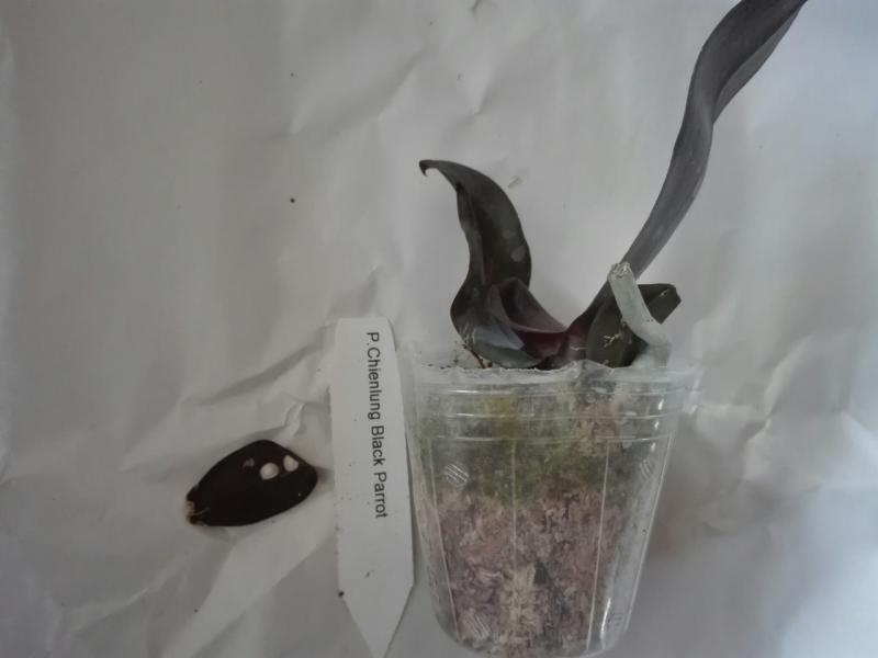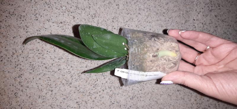 НЕплохое растение, малость потрепаное, большой лист наполовину оторван и странного цвета. В мокром мхе. Корни хорошие, но спящие.