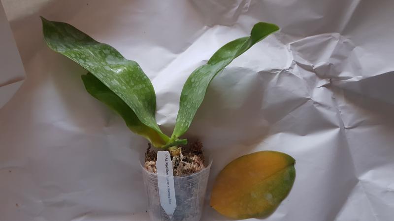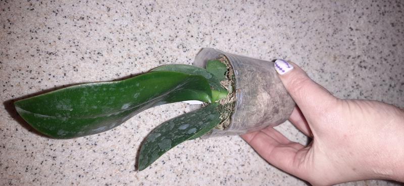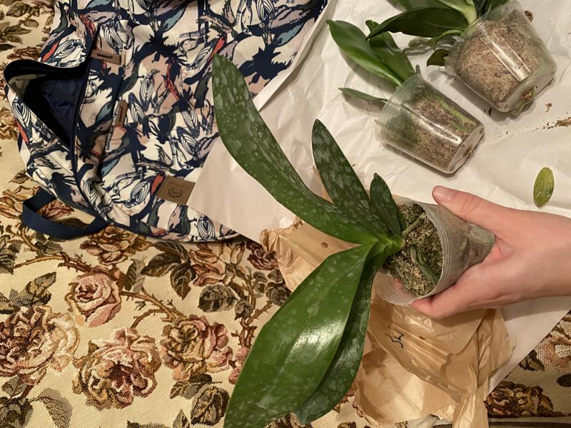 Мох сильно иссушен, как и корневая. Тургор в норме. Один лист отвалился при распаковке, второй желтит от стебля. Есть цветонос, растение уже цвело. Будем следить за состоянием...