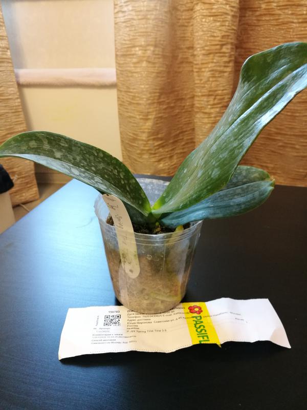 Размеру соответствует, здоровое, крепкое, ранее не цвело, растет цветонос.