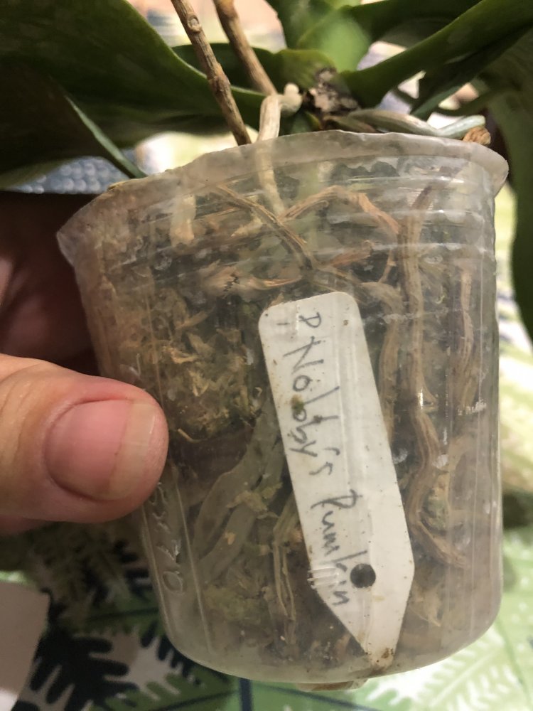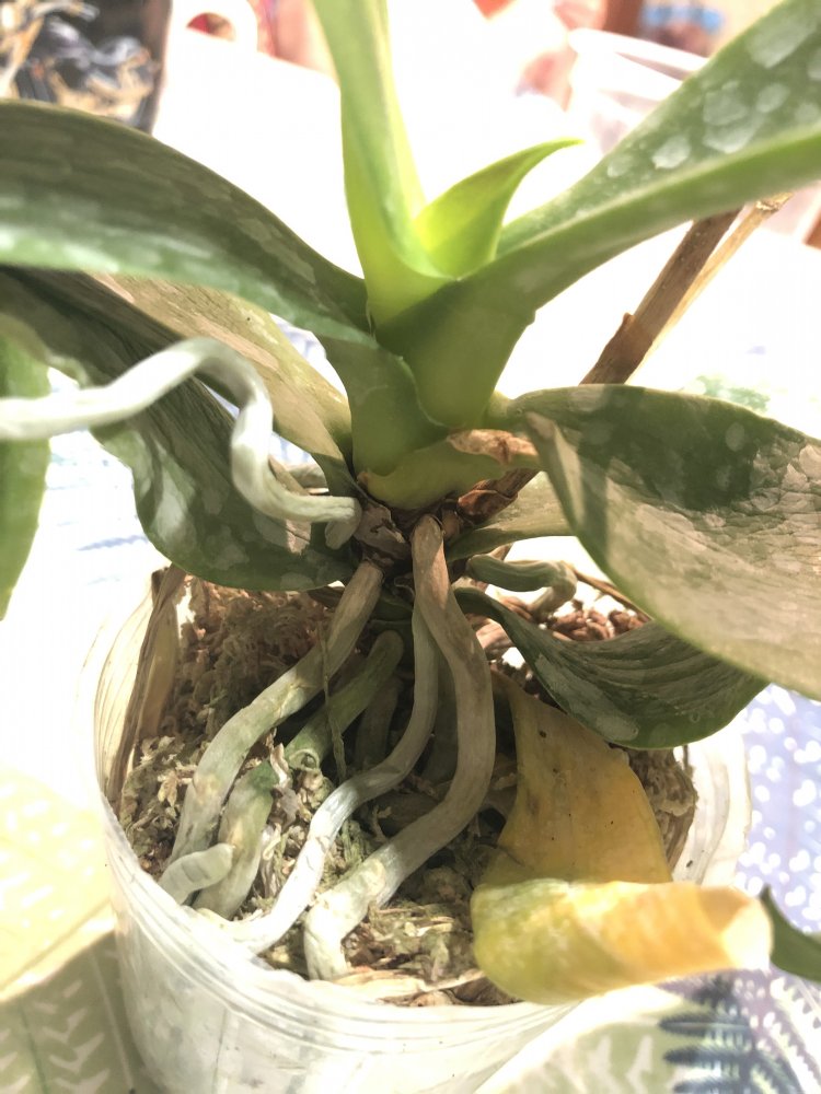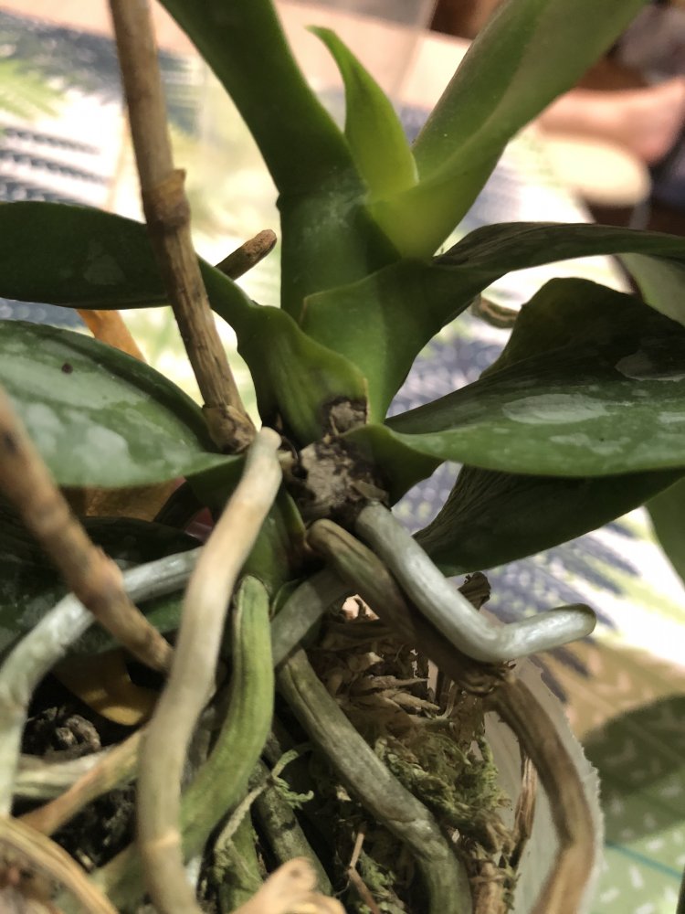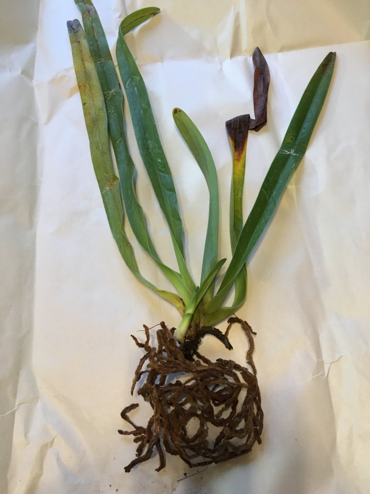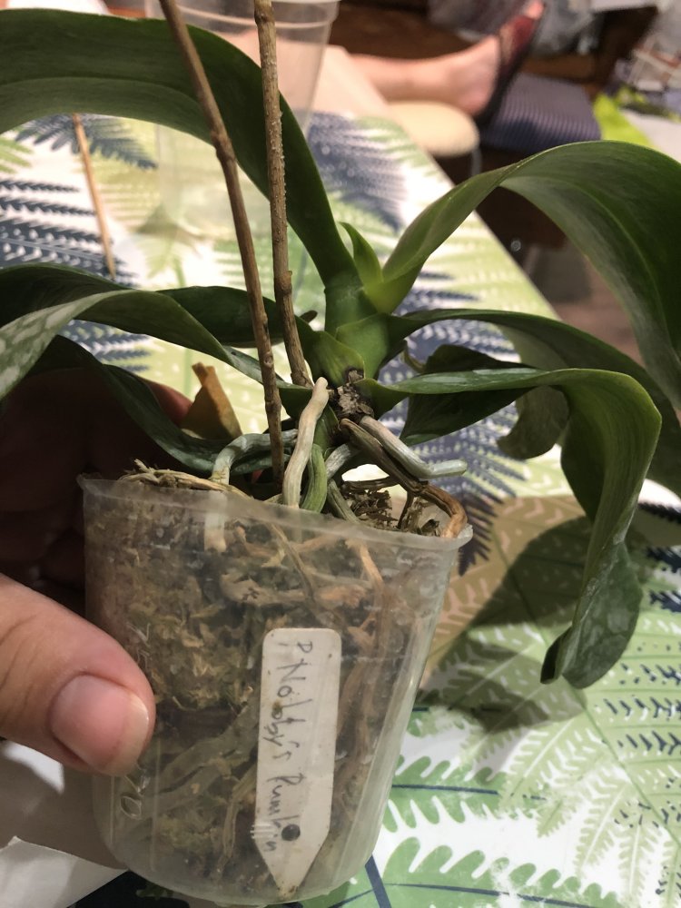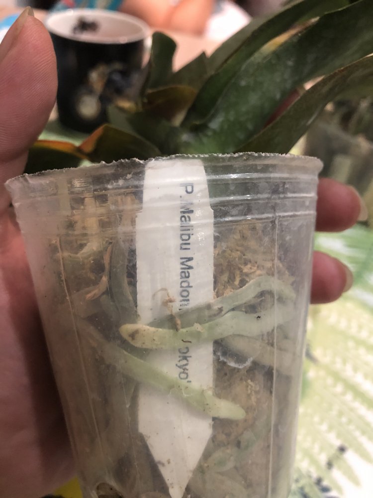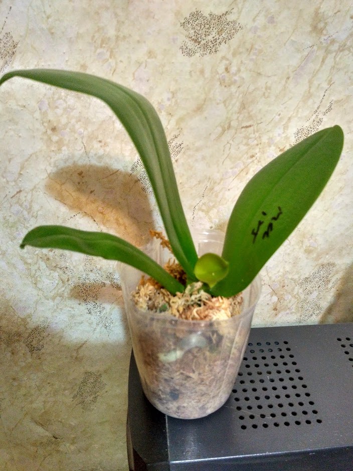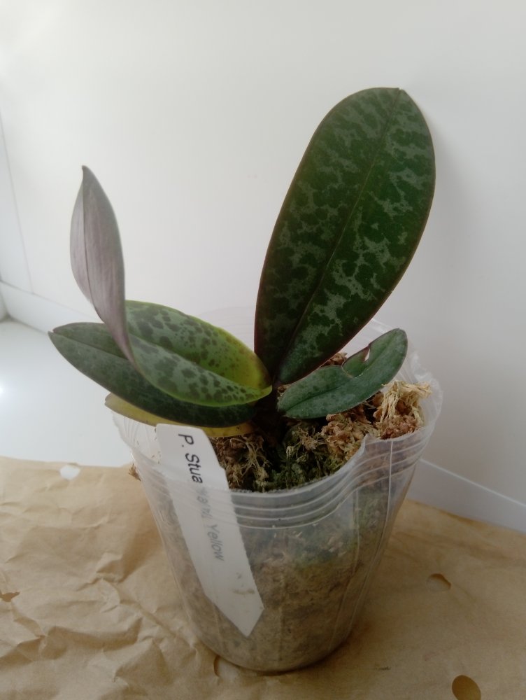 Корешки хорошие.Листья в тонусе,думается размера цветения.Есть небольшой отёк.Очень довольна.Но,растение без бирки,без каких либо опознавательных знаков.Он ли?