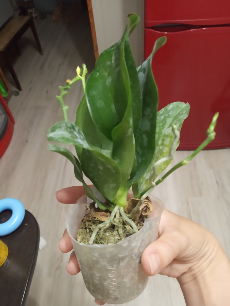 На данный момент моего увлечения орхидеями, ждала его с трепетом, очень хотела, чтобы он у меня появился! Очаровательное растение, пересажен недавно, корешки уже видны в горшочке, отличный тургор, хорооошенький! Спасибо большое Пассифлора за доставленное удовольствие!