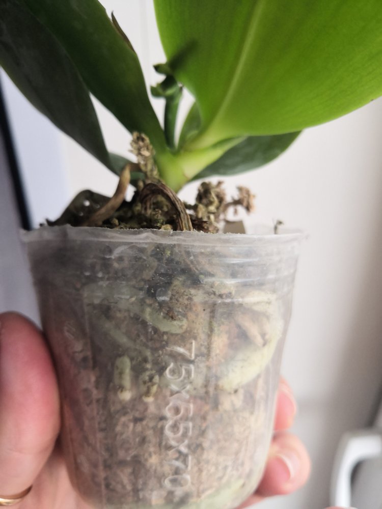Взрослая, отличное растение, много корней, хорошо просушен мох, тургор чуть снижен, старый цветонос. Я очень довольна, спасибо Пассифлора!