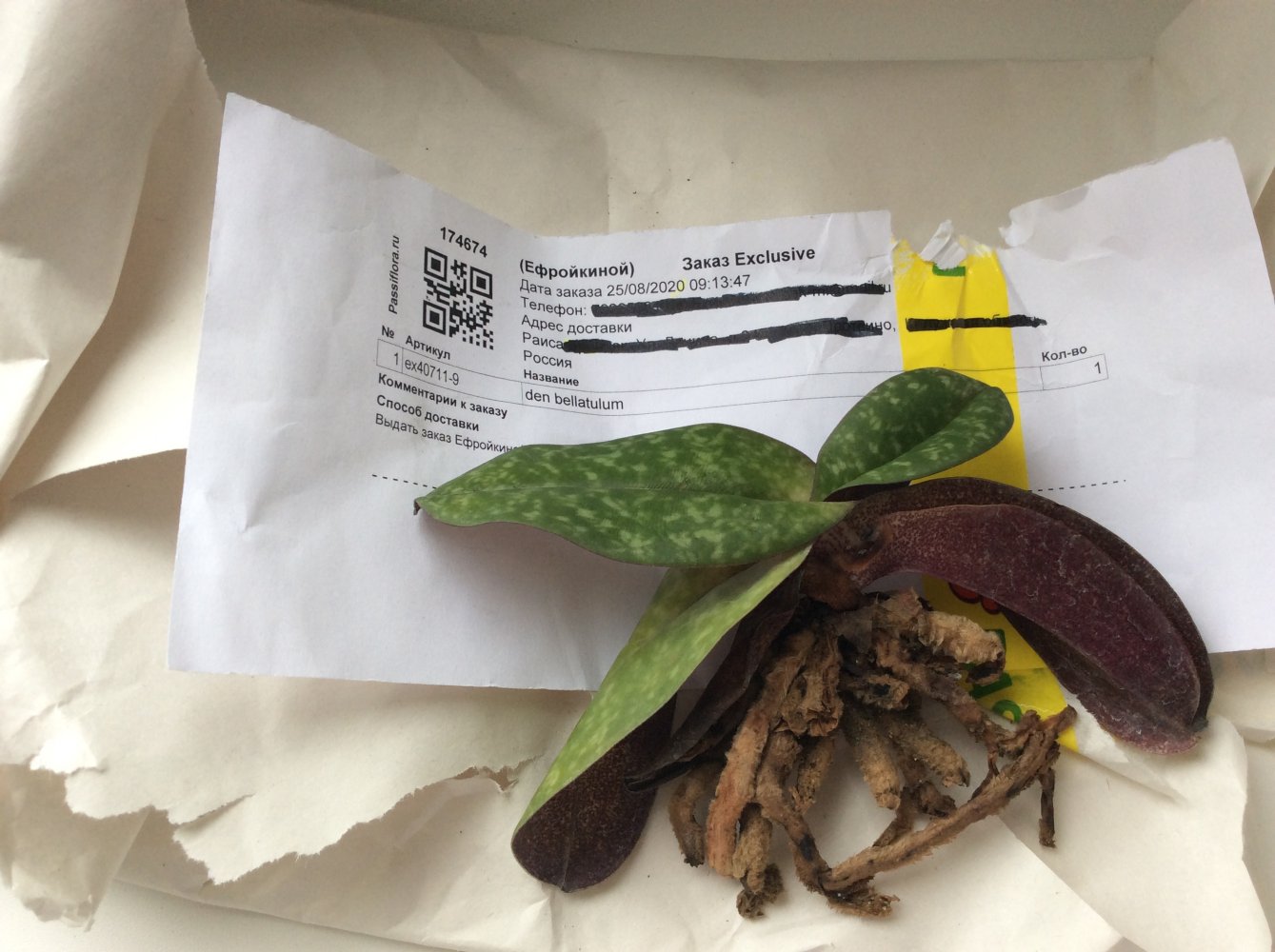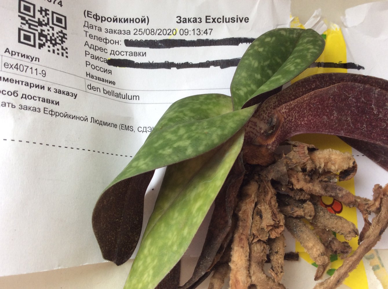 Получен в Москве в пвз на четвёртый день после смс. 25.08.2020 Состояние-удовлетворительное, корней много и все живые. Тургор листьев слегка потерян за время ожидания в пвз. И это не размер цветения, а где-то год-полтора до, но это на мой взгляд не существенно. Посажен в горшок, пришёл в себя, бодр.