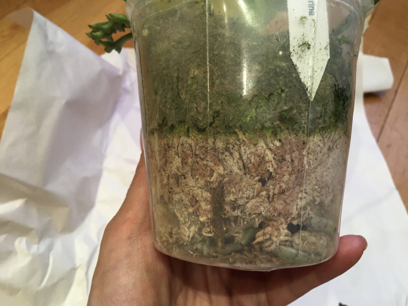 Получен в ПВЗ в день прихода смс. Прекрасное здоровое растение, уже цвело - срезан цветонос. Мох не пересушен, корни в полном порядке. Очень довольна☺️