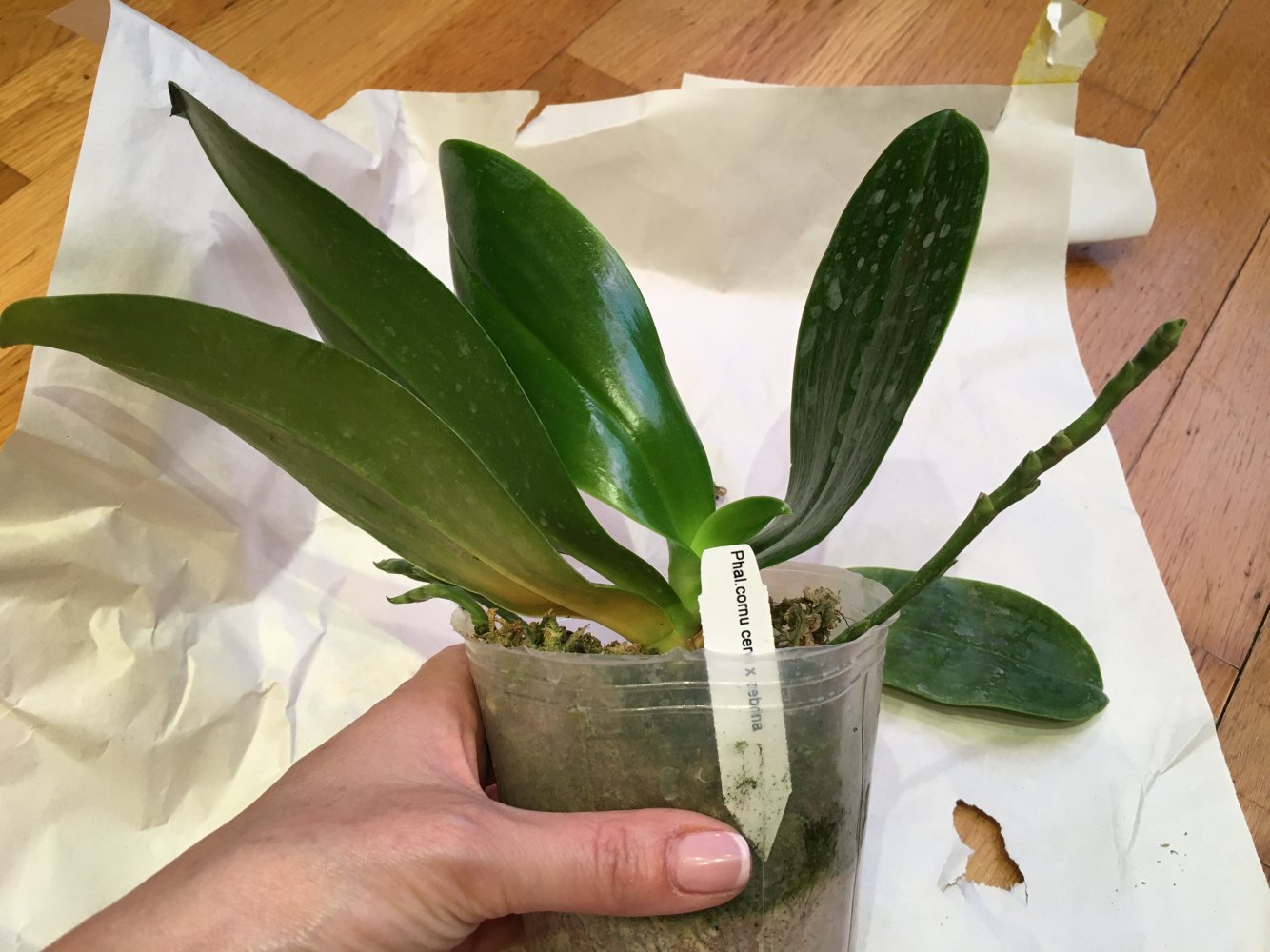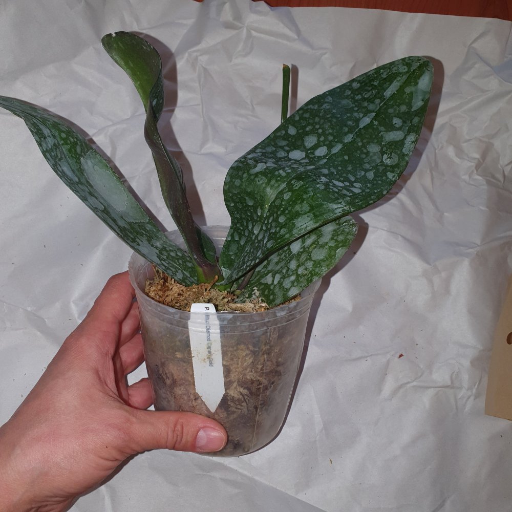 Сегодня получен Phal.cornu cervi x zebrina , спец.42000 заказ №183816. Забирала из ПВЗ в день прихода СМС. Большой (3'5), листья крупные 3 пары, один лист сломан (не критично).