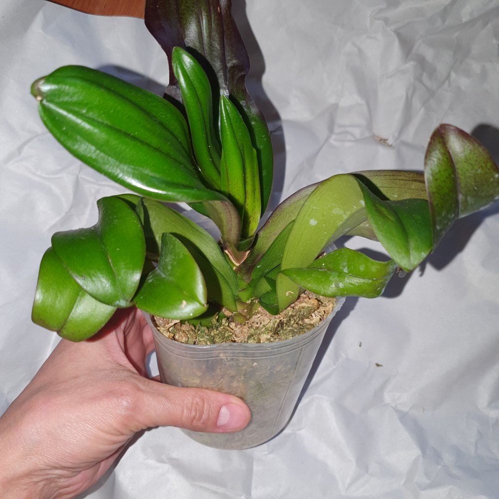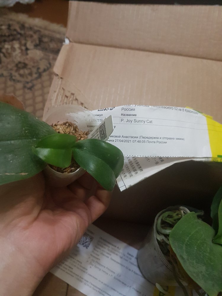 Заказ #188496 P. I-Hsin Mapple Valley заказан 9.06.21 получено сообщение 11 июня, 12 растение было получено. Заказ очень быстрый. Растение сильно усушено, тургор снижен, нижние листья отпали. Не критично. Корни живые есть. Два уже отцветших цветоноса с остатками цветов. Цветы были мелкие, около 3-4см. Листья не сизые. Темно зеленые. После полива стало видно что с крапом. На фото и видео выглядит гораздо эффектнее. А так похоже очень на парфюмерную фабрику. Бирки нет. У кого ни будь есть эта орхидея? Она так выглядит?