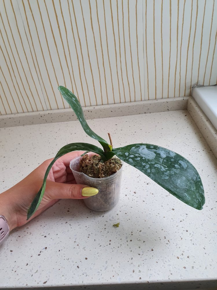 Хороший экземпляр, горшочек 2.5, 3 листочка, четвёртый начал расти, тургор слегка снижен, потому что очень пересох мох, корешков почти не видно. Но растение абсолютно здоровое, отопьется. Бирочки нет. Заказом довольна, жду цветения.