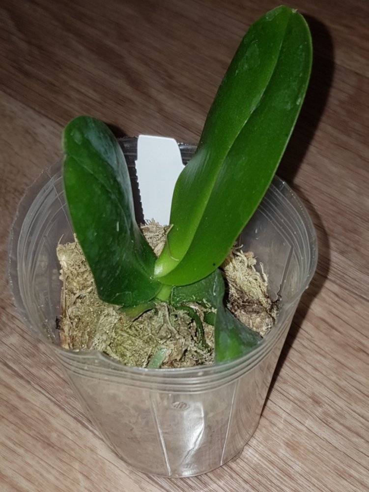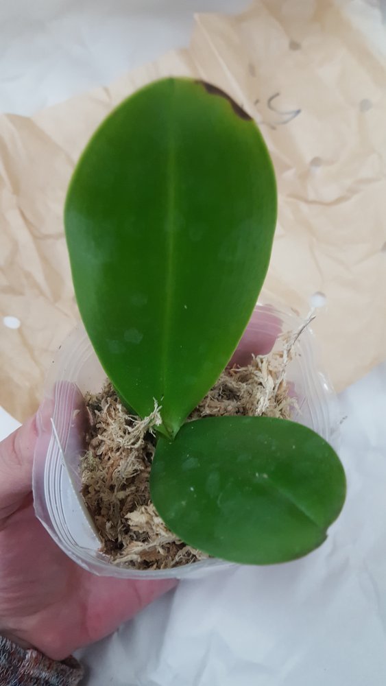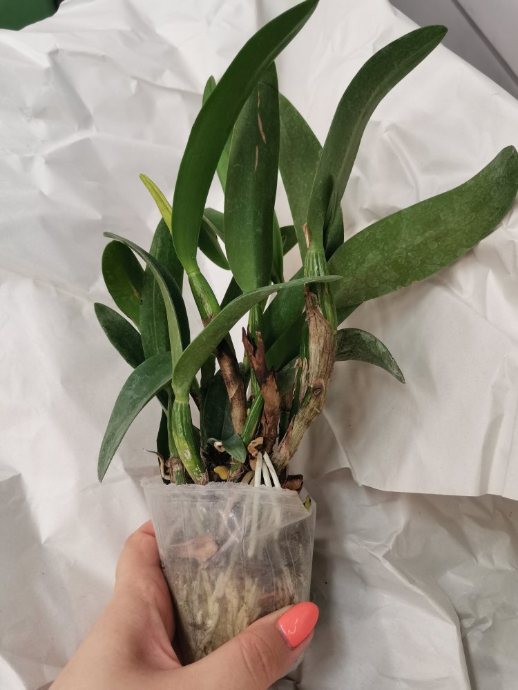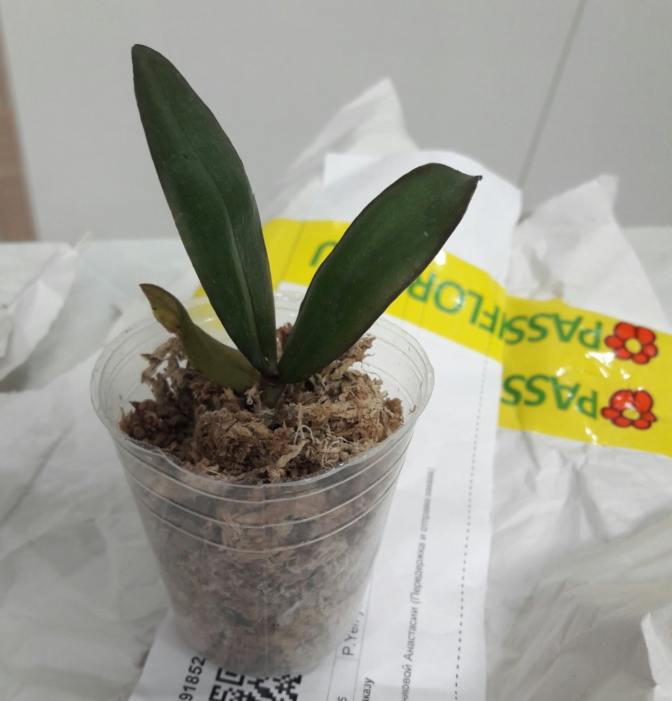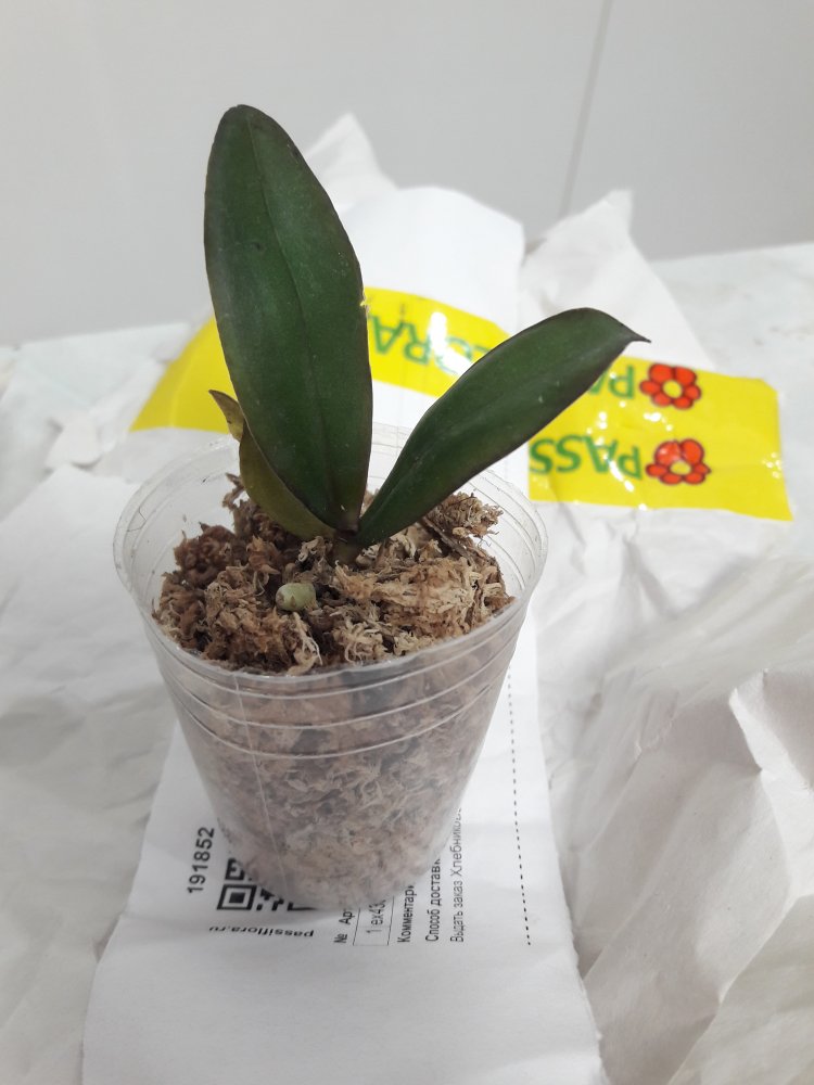 Пришёл совсем маленький. Сантиметровый корешок сверху, живые зелёные во мхе. Будем растить.