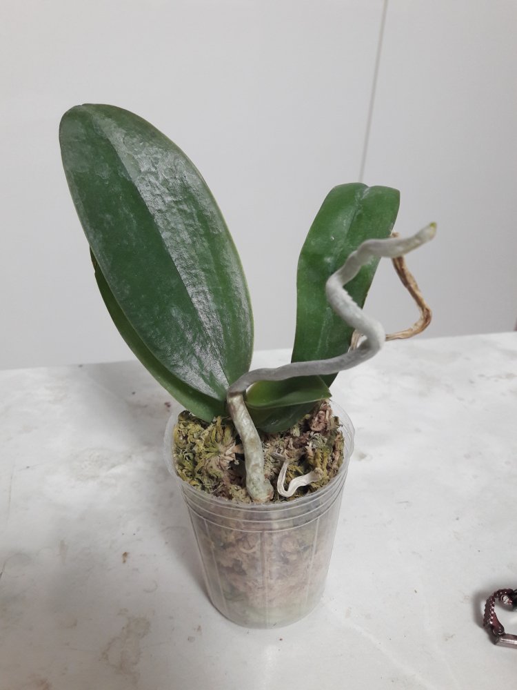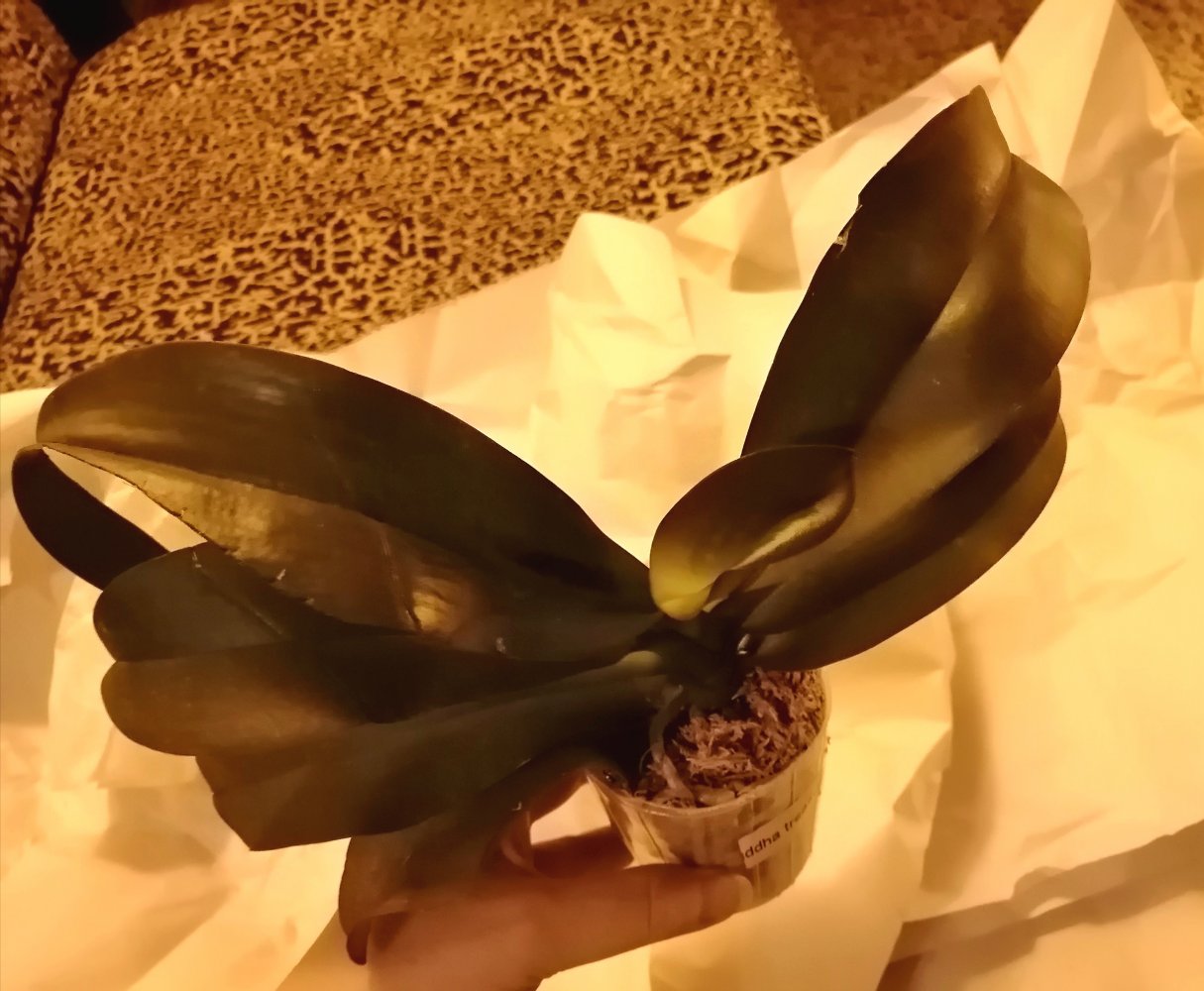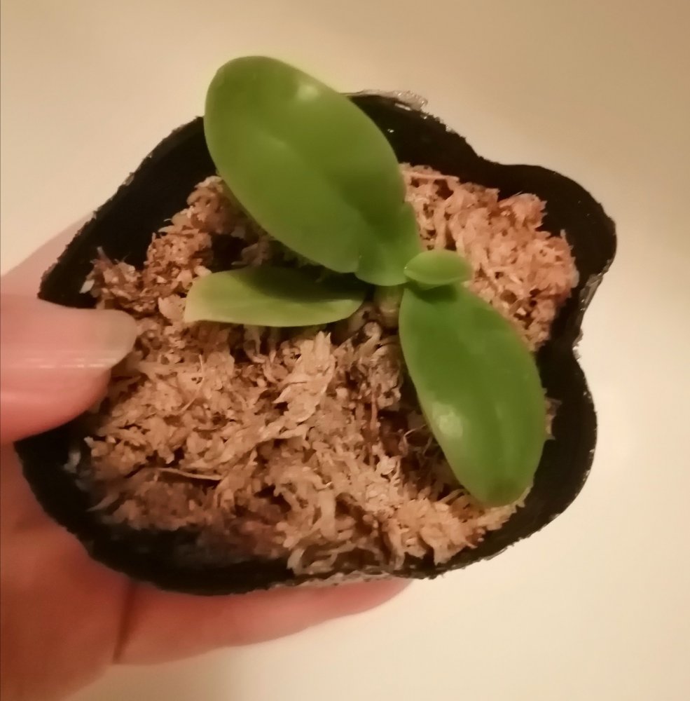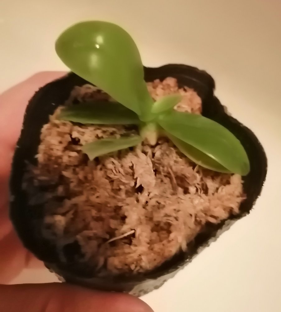 Пришёл совсем маленький. Сантиметровый корешок сверху, живые зелёные во мхе. Будем растить.