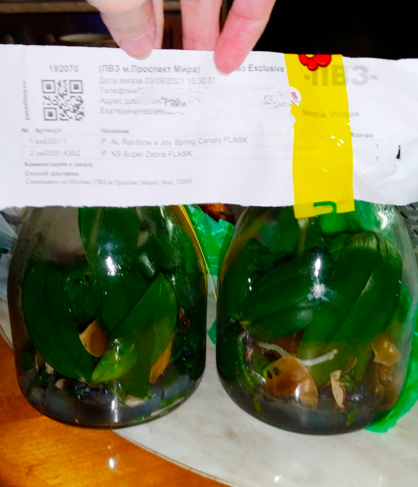 Заказ 191933. ex.43350. P. Yellow Chocolate 2,5. Получен вчера в день смс. Доставка 1час по Москве с утеплителем. В заказе 2 растения. Оба растения полноценные 2.5 в просушенном мхе. Корней много, листья в тургоре. Серебристые листья мне не достались. Листья тёмные, с обратной стороны малиновые, есть крап на молодом листе. Повреждений и нелегалов нет. Прекрасные растения. Спасибо!