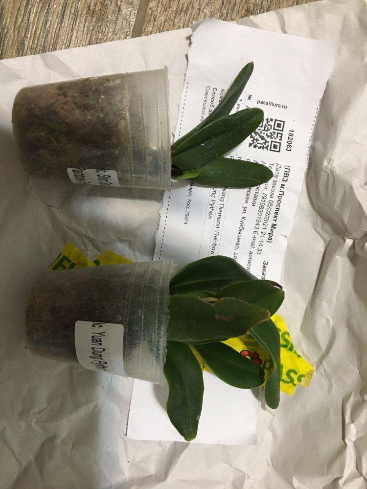 Заказ #182063, получен в день смс, 2 каттлеи по спецпредложению 41288. Rlc. Shin Shiang Diamond Rainbow и Rlc. Yuan Dung Python - подростоки. Посадка в мох, горшочек 2,5. Небольшие заломы на листе, тургор отличный, следов паразитов, гнили нет. Сквозь стенки видны живые корешки. Но мох не просто вогкий, он очень мокрый. Спасибо за растения. IMG-352f72100c2d17b7b276ab30d99e48ec-V.jpgIMG-a48f8f8e2590bc0197bda00864f8c891-V.jpg