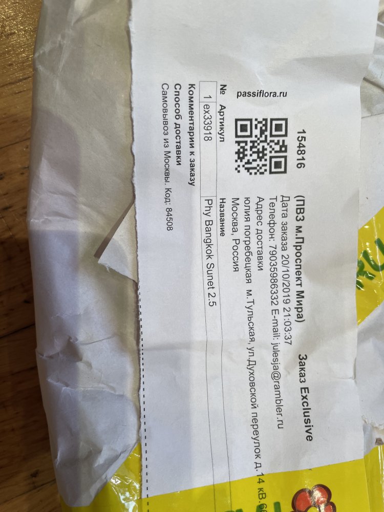 Мой первенец от Пассифлоры, заказ 191970, смс сегодня в 12:45, забрала через 1,5 часа, и столько же в тёплой машине.