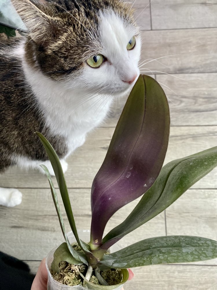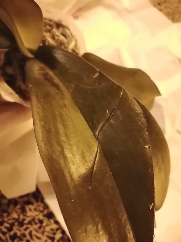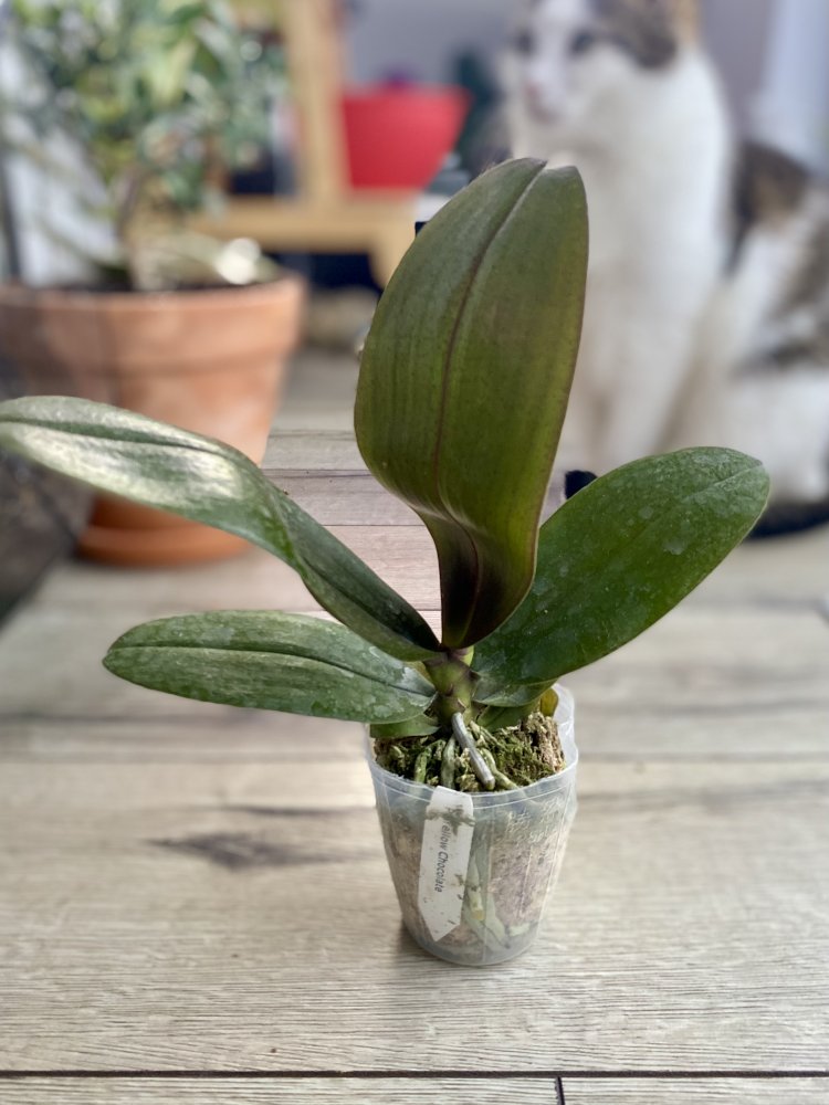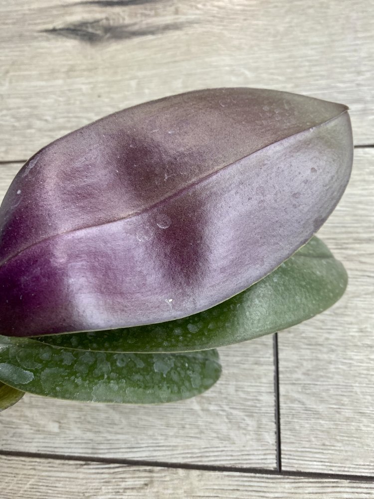 Прекрасный откормленный шоколадик: мох сухой, корни жирные, два нижних листика отсушили, но это ерунда. Серебристых листьев не досталось, но свекольный тоже ничего. Одобрено, спасибо))