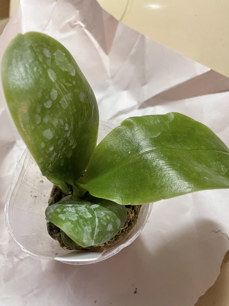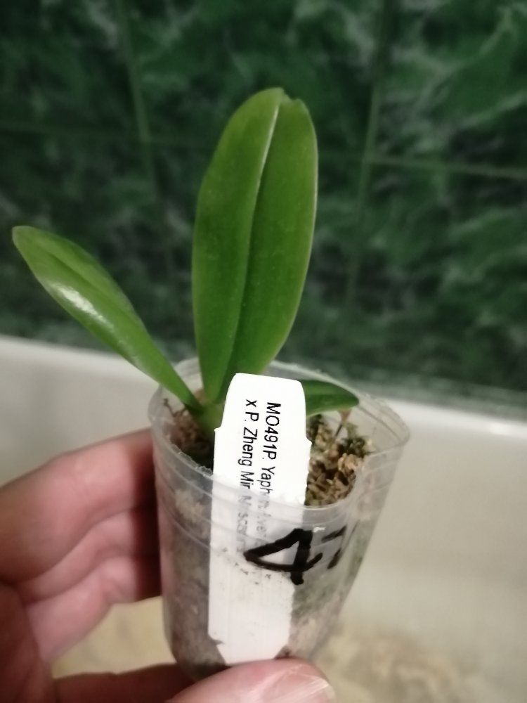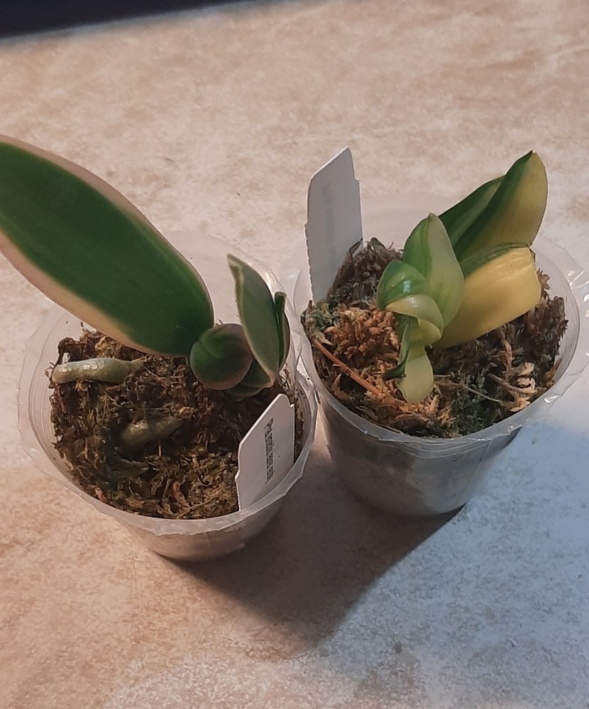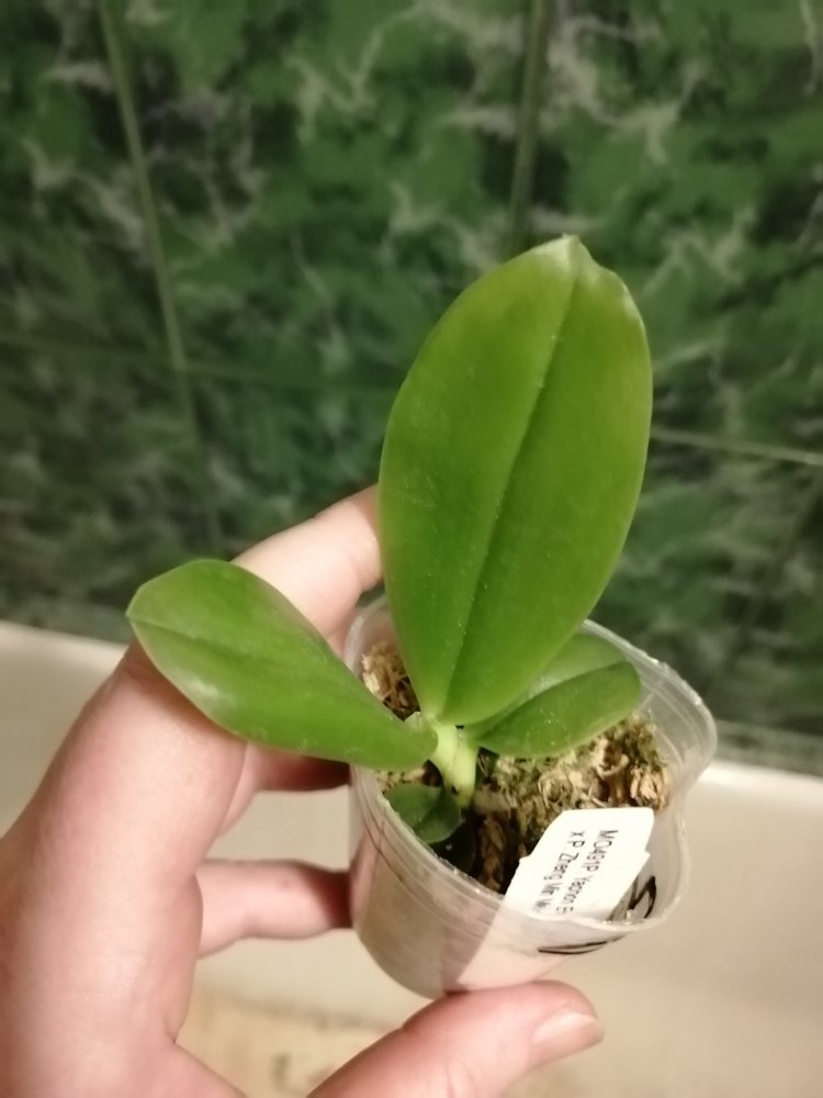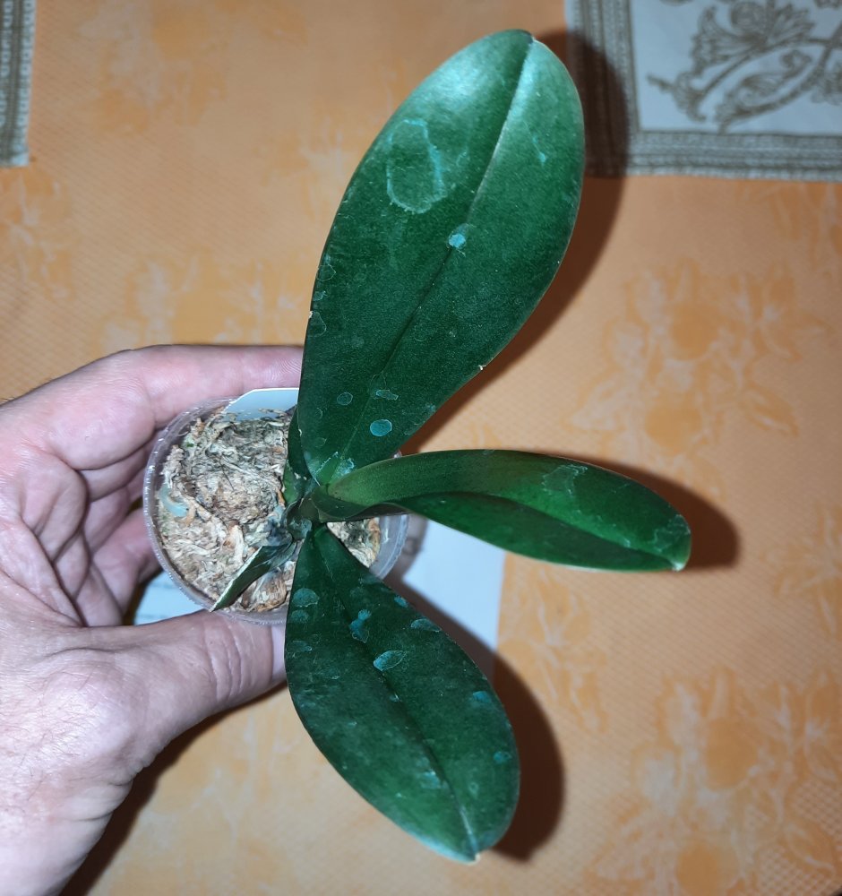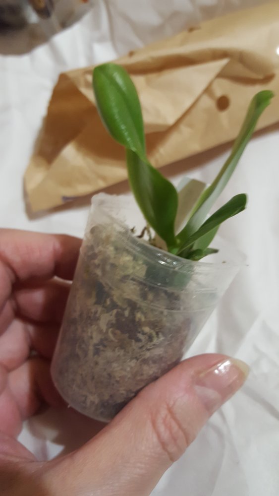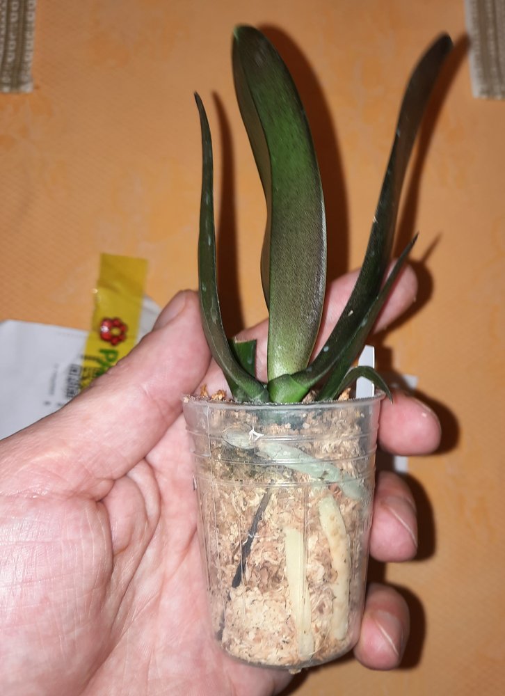 P. Amabilis variegated ex 33093 Заказ был оформлен 02/09/2019, в ПВЗ получен в день поступления 21.02.2022. Пришло очень молодое растение, явно недавно высажено из фласки. Клопик, но листочки красивые. Возможно, когда разместят информацию о том как быстро растить таких малышей, впечатление при получении подобных изменится, а сейчас - размер очень расстроил. Мох хорошо просушен, тургор сохранен. Корней не видно. Бирка с названием вложена. В целом, малыш хороший, вредителей не обнаружено. Высота горшочка 5 см.