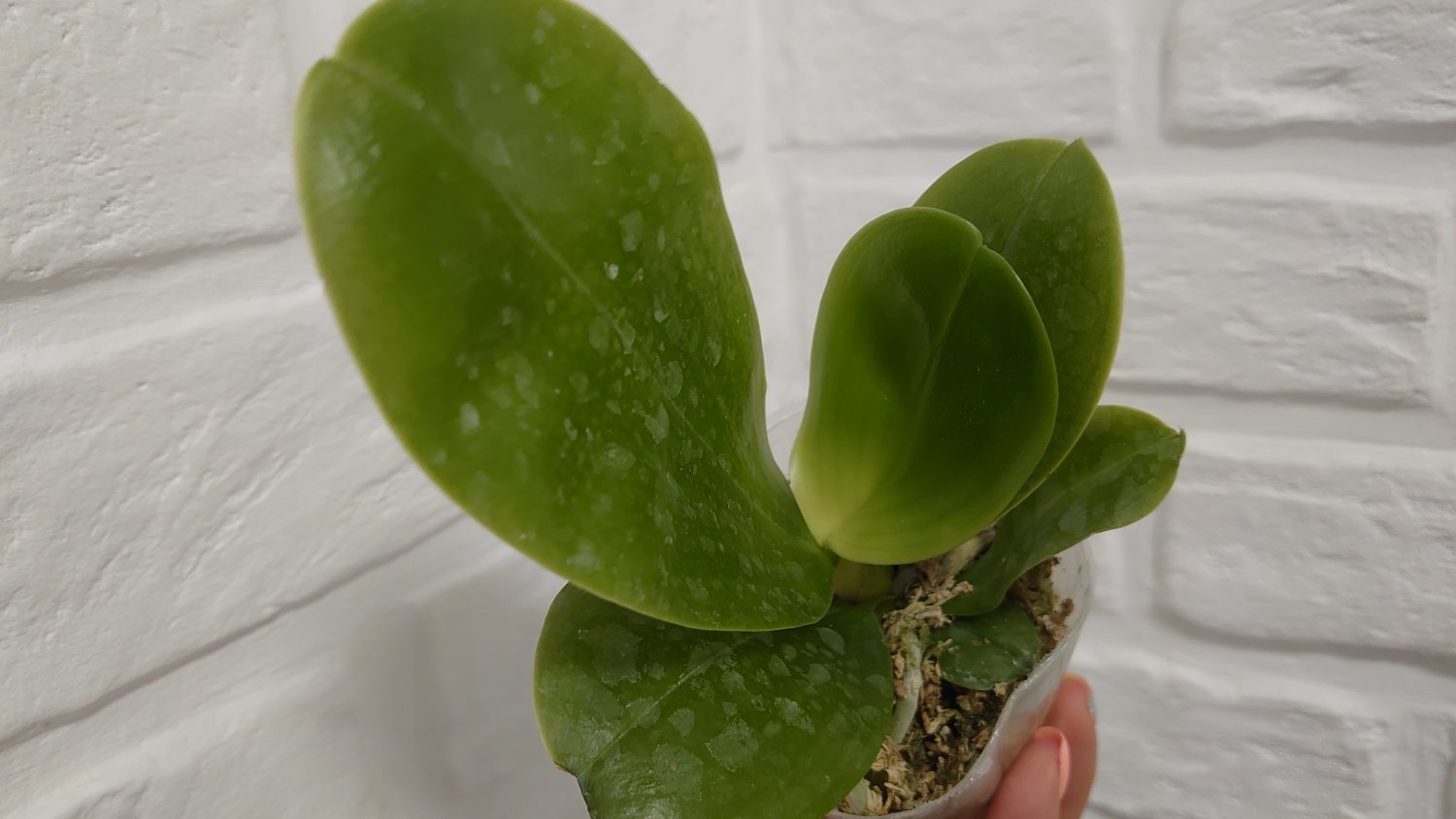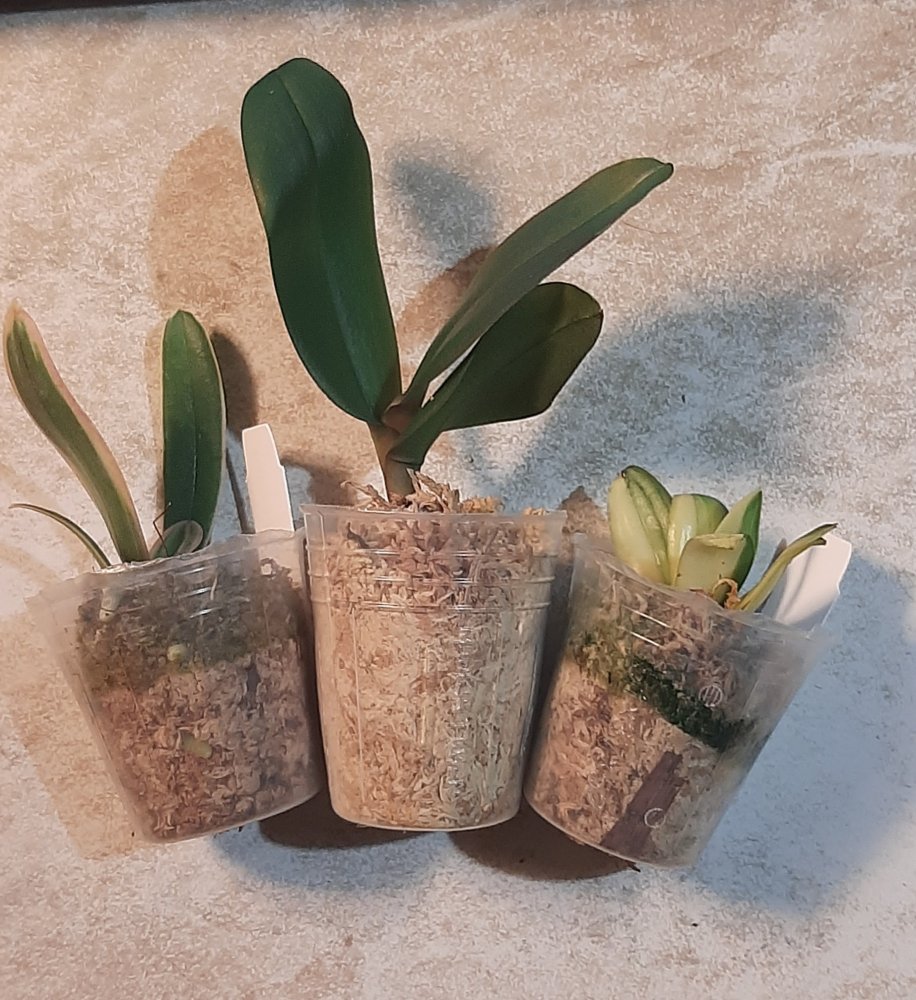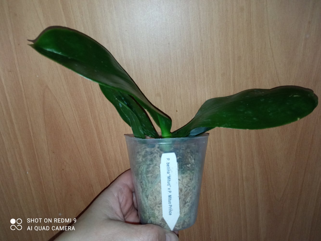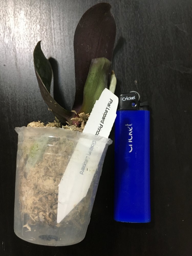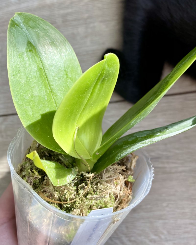 P. Amabilis variegated ex 33093 Заказ был оформлен 02/09/2019, в ПВЗ получен в день поступления 21.02.2022. Пришло очень молодое растение, явно недавно высажено из фласки. Клопик, но листочки красивые. Возможно, когда разместят информацию о том как быстро растить таких малышей, впечатление при получении подобных изменится, а сейчас - размер очень расстроил. Мох хорошо просушен, тургор сохранен. Корней не видно. Бирка с названием вложена. В целом, малыш хороший, вредителей не обнаружено. Высота горшочка 5 см.