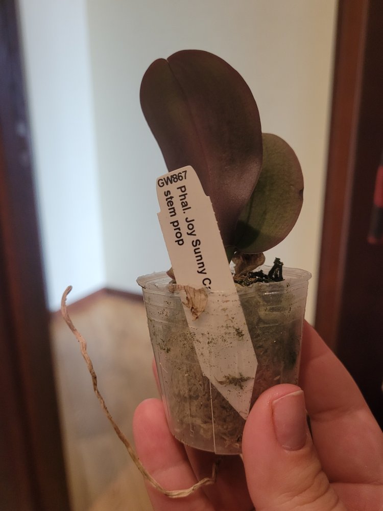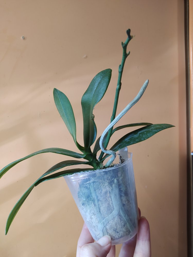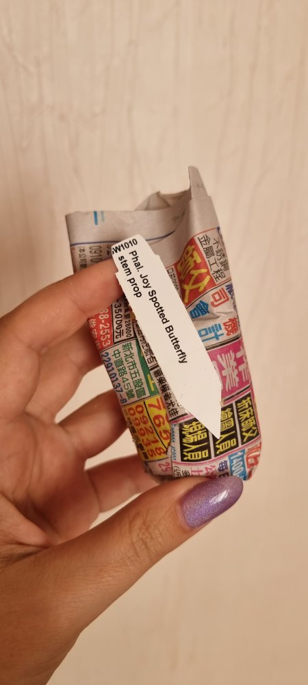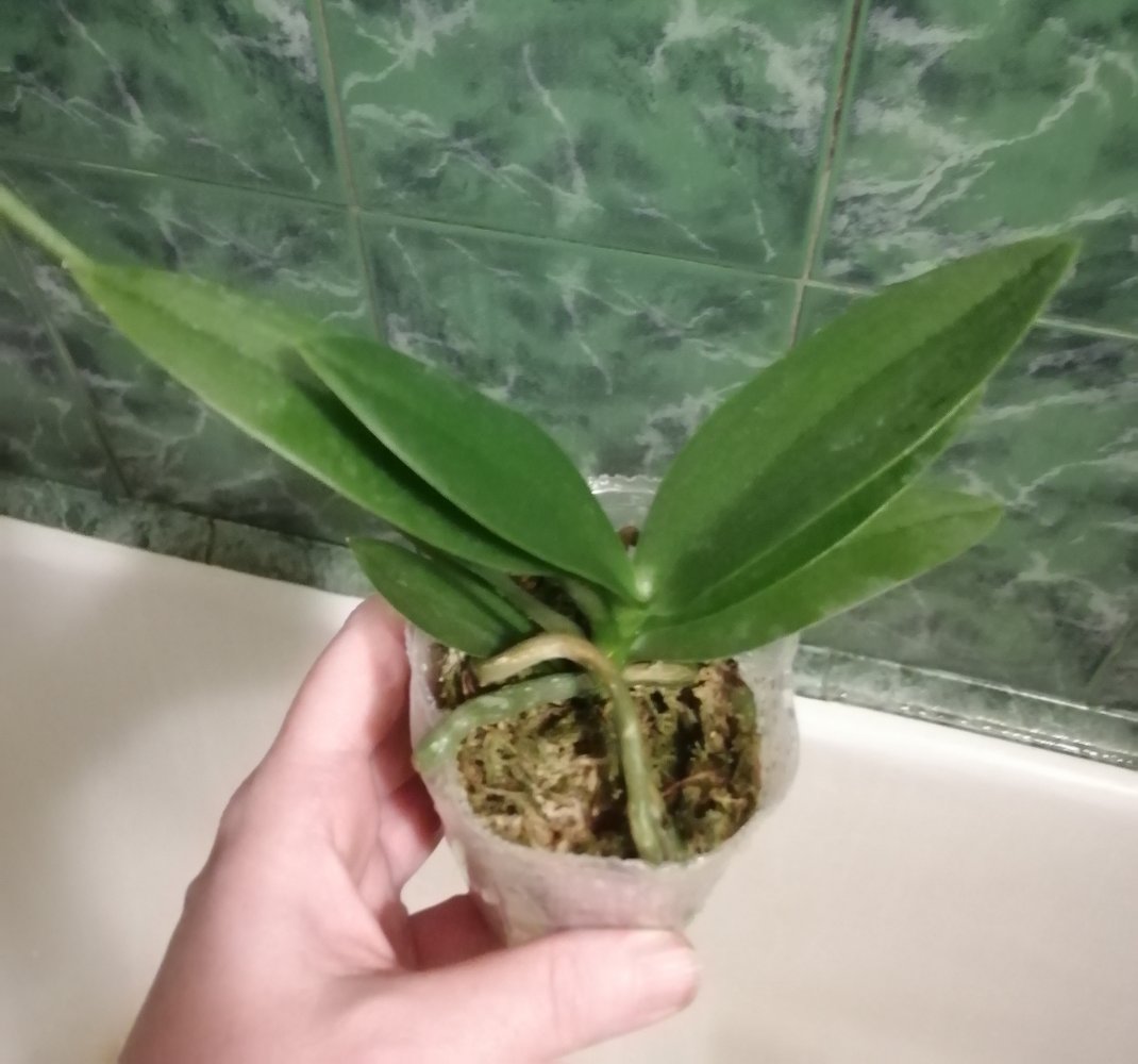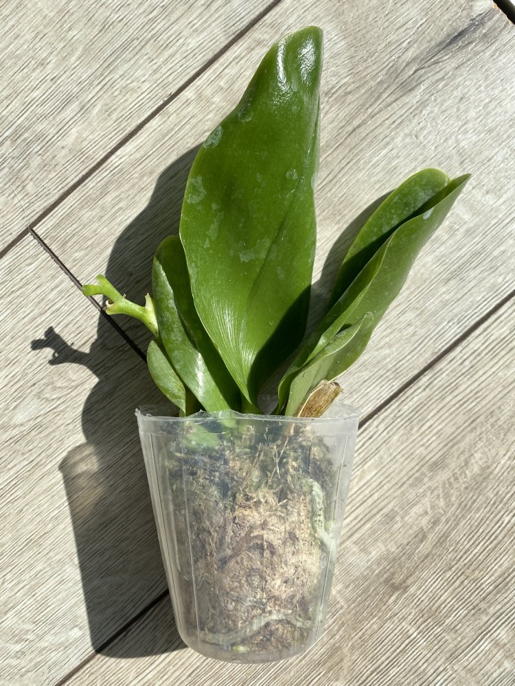 https://passiflora.ru/product_info.php/products_id/394483 Получен в день прихода смс, в списках так его и не нашла, записала в конце листочков за 5 июня. В дороге 1 час на машине. Хорошо упакован, ещё и в вощенную бумагу, на цветоносе 2 засохших цветочка. Корешки хорошие, тургор не потерян, мох в меру сухой. Спасибо. 20220608_171808.jpg