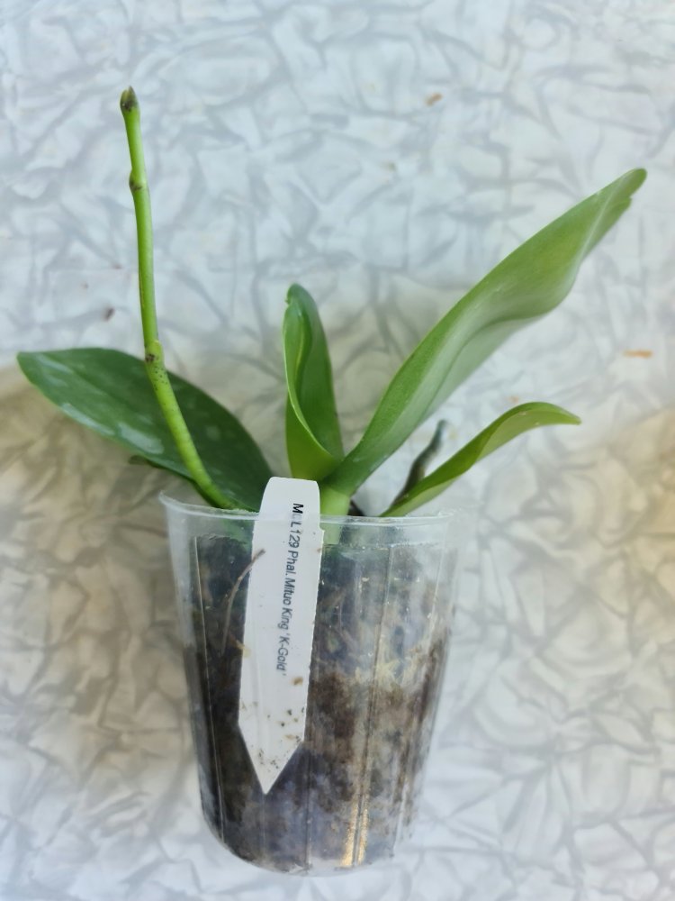Спец 48928 заказ 199762 MCL129 Phal. Mituo King ' K-Gold ' 2.5 - Получен в день смс. Хорошее, крупное растение в размере 2,5, листья в тургоре, корни видно через горшок. Есть растущий цветонос. Спасибо огромное!