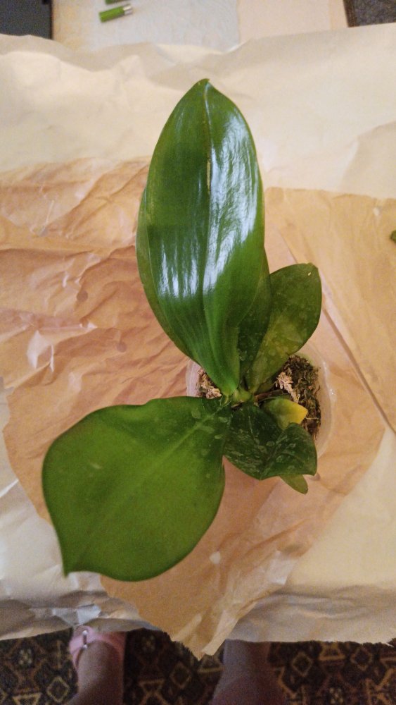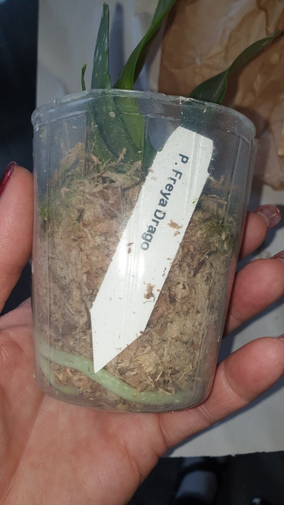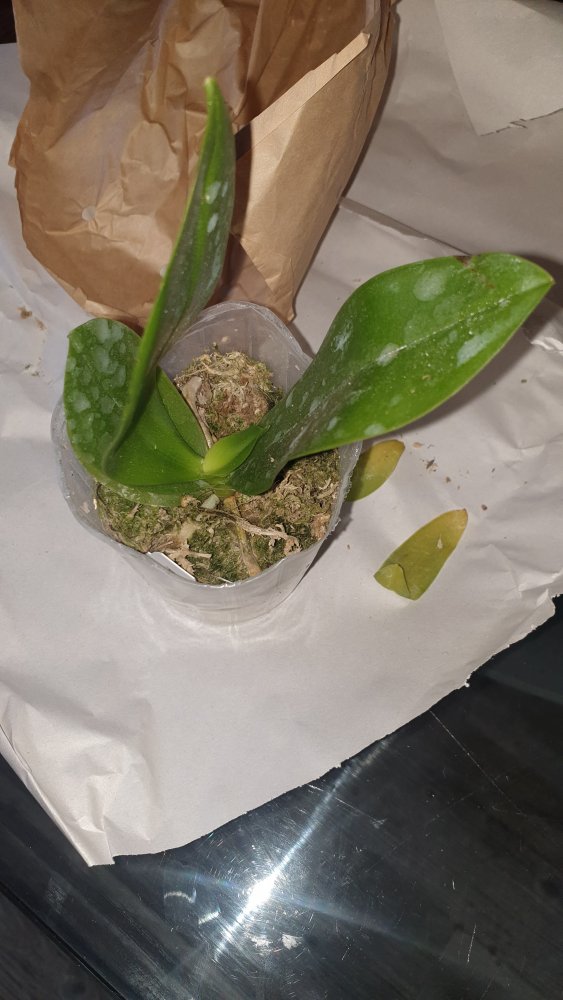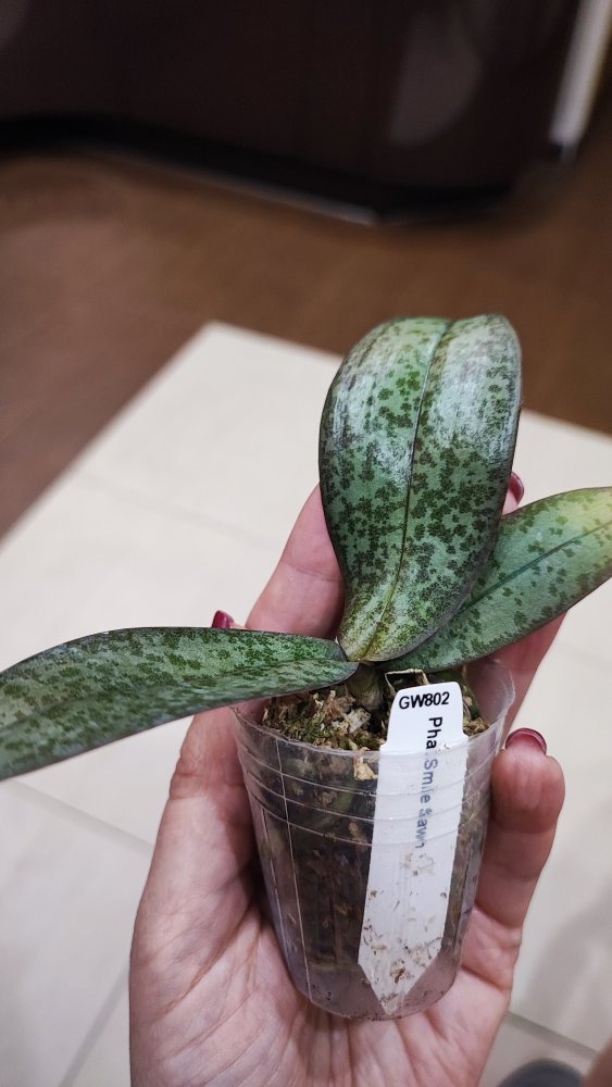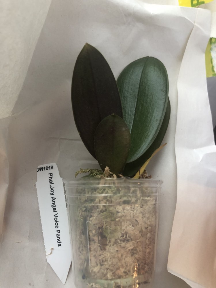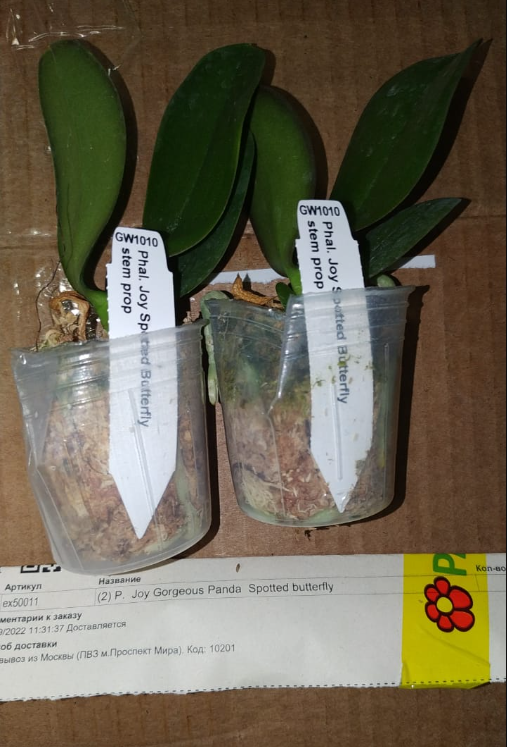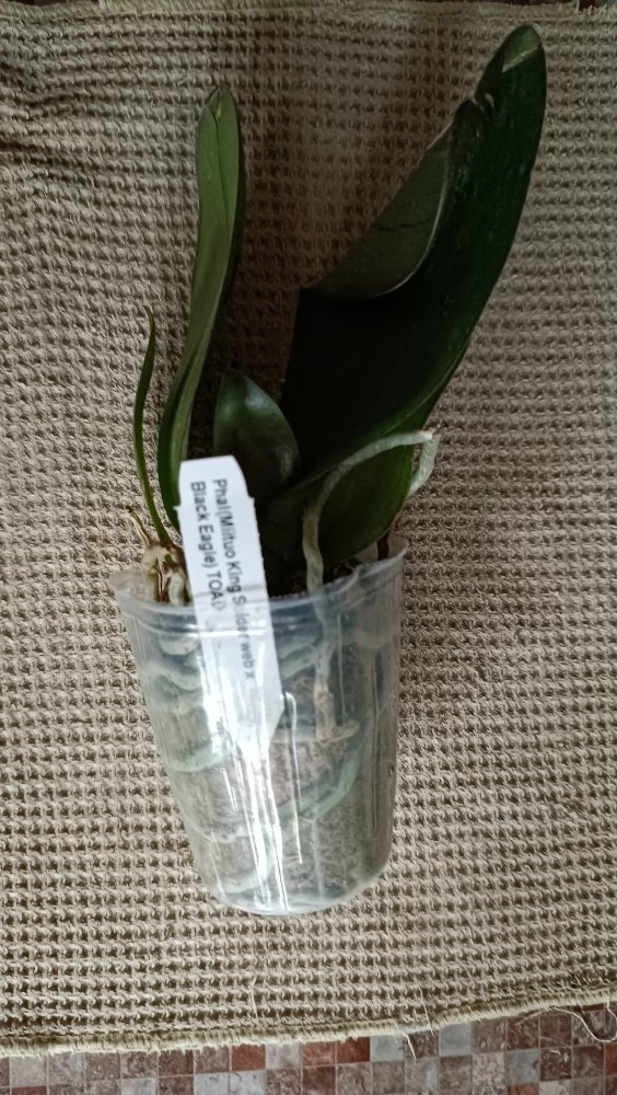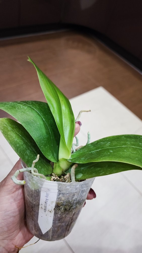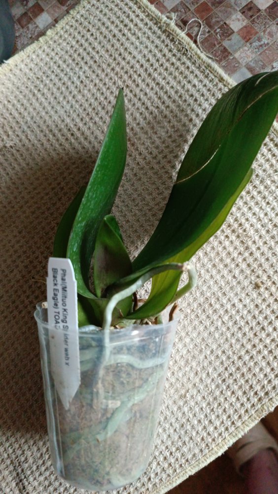 Получен сегодня в ПВЗ Phal.( violacea x Timothy Christopher) "San-Ho Chanel". Спец.50025. Растение отличное, в размере 2,5, бирочка в наличии. Листочки очень хорошие, в тургоре. Корни похуже, частично усохшие. Растение посажено в смесь мелкой коры со мхом. Субстрат пересох, на четверть объема высыпался из горшка.