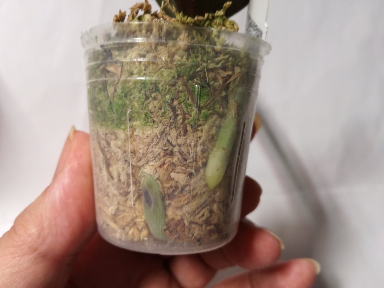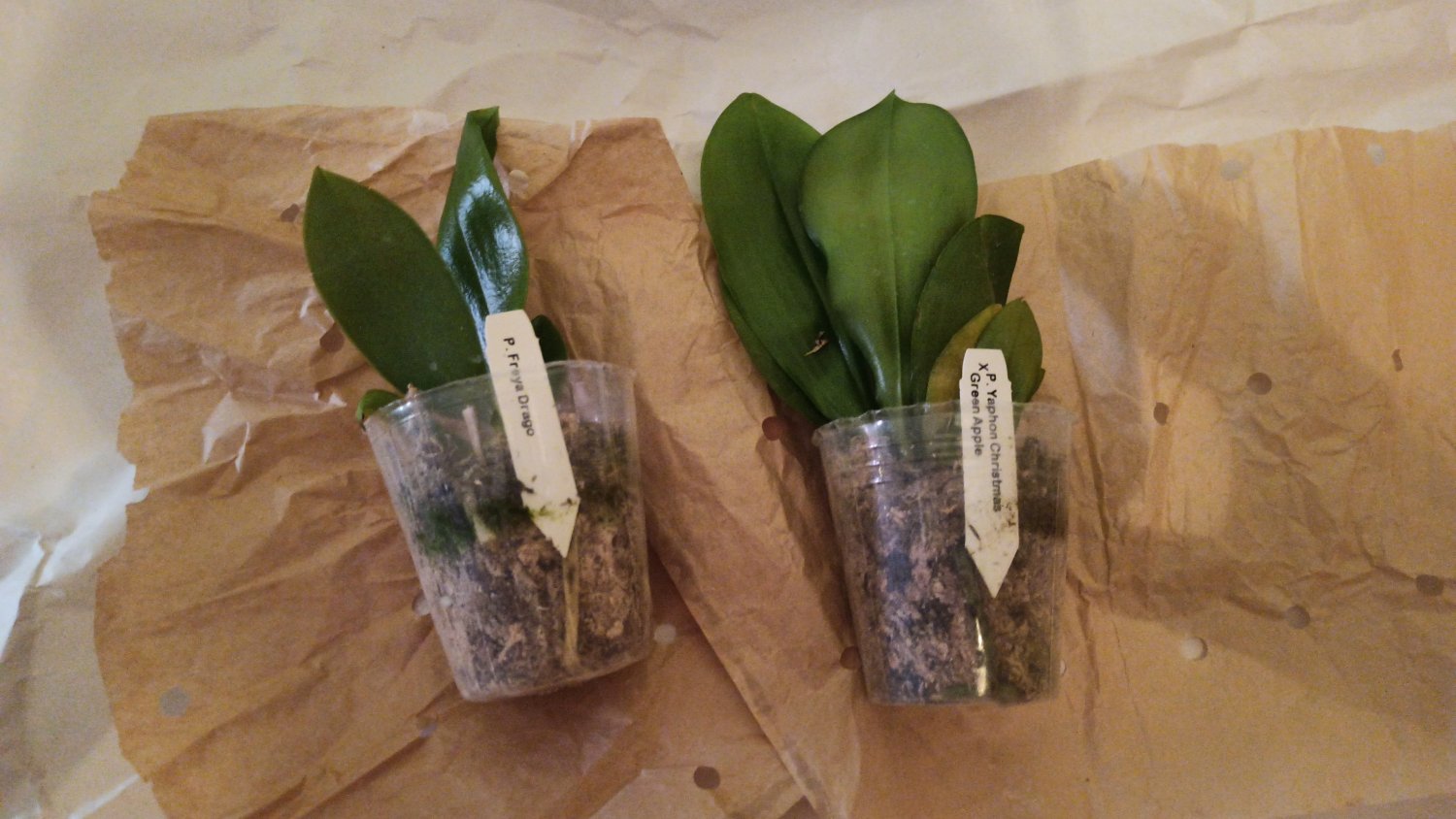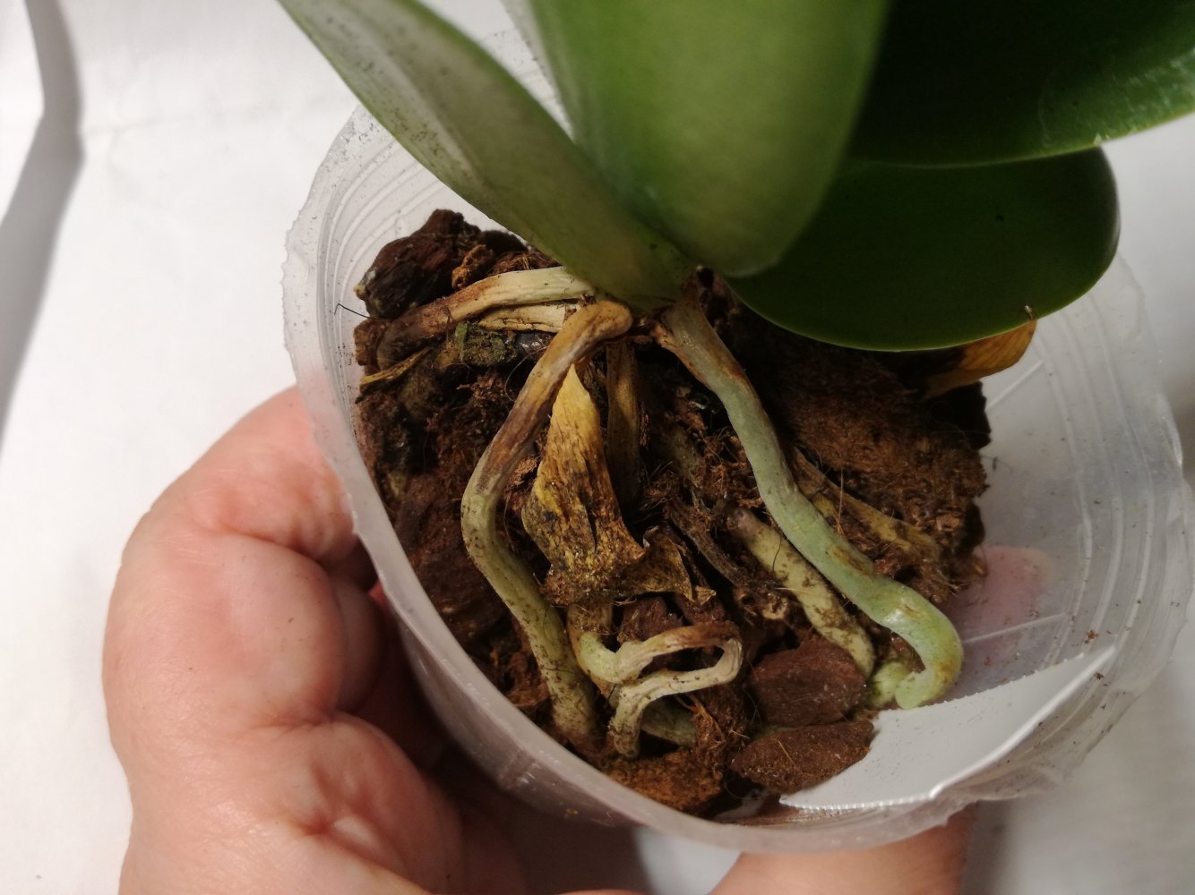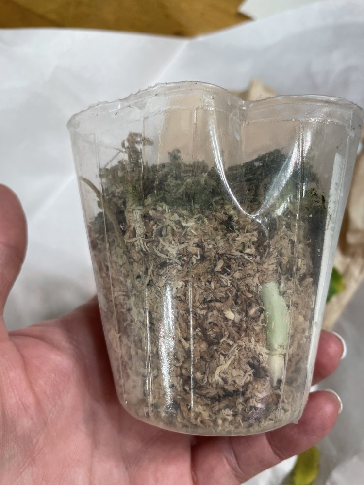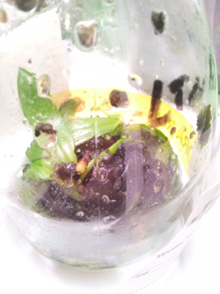 Получен сегодня в ПВЗ Phal.( violacea x Timothy Christopher) "San-Ho Chanel". Спец.50025. Растение отличное, в размере 2,5, бирочка в наличии. Листочки очень хорошие, в тургоре. Корни похуже, частично усохшие. Растение посажено в смесь мелкой коры со мхом. Субстрат пересох, на четверть объема высыпался из горшка.
