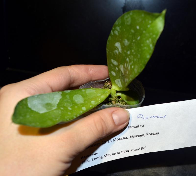 Ну вот пришел один досыл из 6. В списках прибывших, мой заказ был отмечен два раза, т.к. у меня там два растения, я и подумала, что пришло два растения, но выдали одно, а именно Phal. Zheng Min Jacaranda 'Huey Ru, второе растение из этого заказа было как раз Phal. Fomosa San Fun 'Ching Ruey' AM/AOS, я уж губы раскатала:)):, а нет облом, ждем дальше :expect: