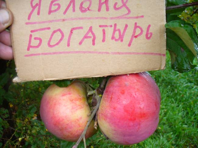 Нашла в интернете фото похожих яблок и тоже подписаны как "богатырь" но по описаниям яблоки у богатыря зеленые а не красные...